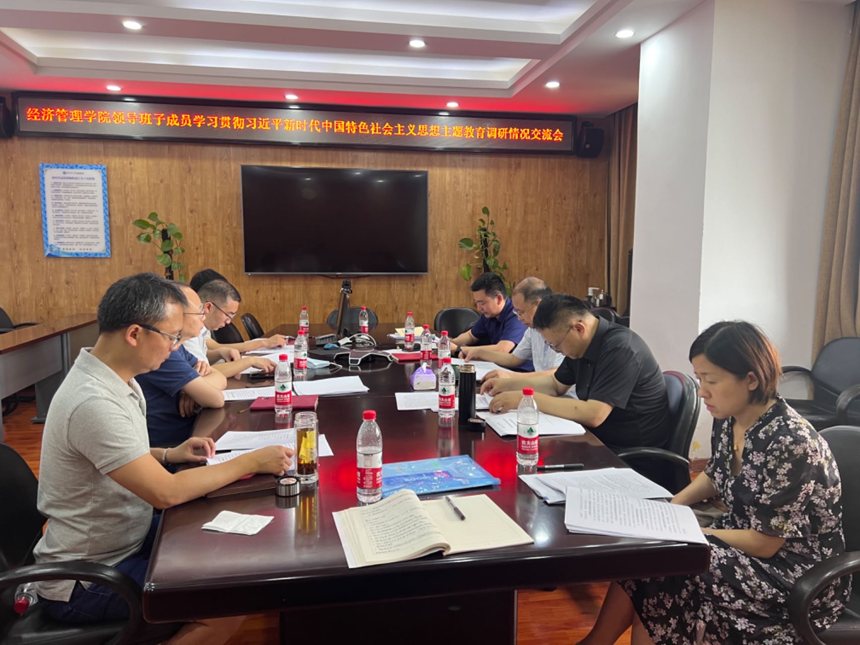 2023年6月25日上午9:00,公司第五届党委2023年第8次理论学习中心组学习、第53次全体会议以及领导班子学习贯彻习近平新时代中国特色社会主义思想主题教育调研情况交流会在九里校区零号楼0607会议室召开。学校学习贯彻习近平新时代中国特色社会主义思想主题教育监督指导组第八组组长任新红同志莅临指导。