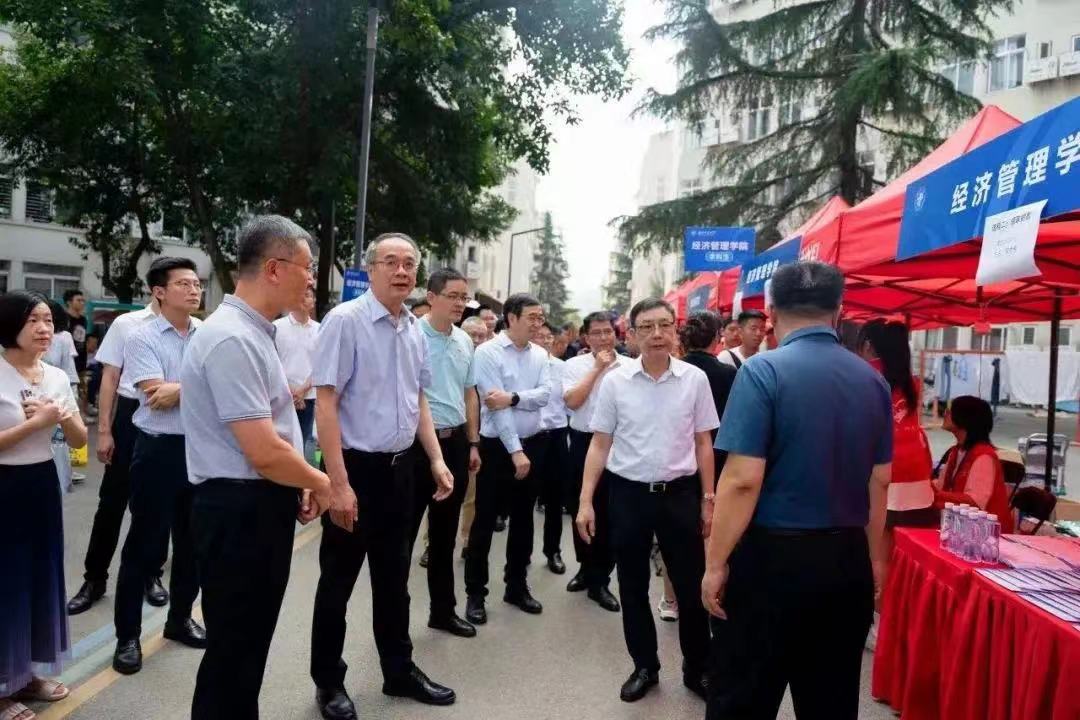 在新生报到期间,公司党委书记余敏明,董事长杨丹,副董事长刘长军,学校相关职能部处负责人,公司党委书记王斌,执行经理郭强,党委副书记杨宏毅,党委副书记、纪委书记晏理斌,副经理周嘉南、李良、聂佳佳等领导来到迎新现场,与前来报到的2023级新生们亲切交流,向他们表示热烈欢迎,并慰问了迎新现场的工作人员与志愿者同学。