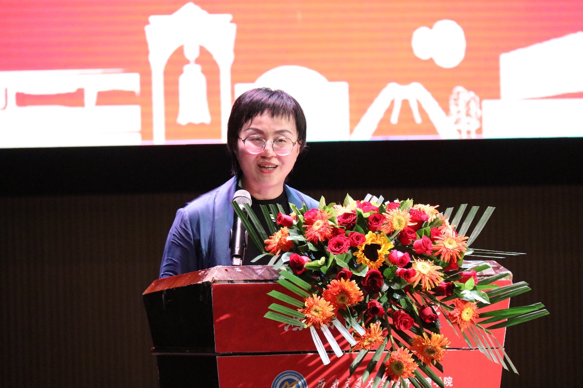 大会第五项,班主任代表李一员致辞。李一员老师结合《一所大学的抗战》,向同学们介绍了哈哈体育与国家民族同呼吸、共命运的非凡历史。对于本科生,她强调同学们要学会自我反思、制定职业生涯规划、积极参与社会活动。对于硕士生及博士生,她希望同学们抓住学习的机会,重新审视定义自己,审视自己和他人、社会以及世界关系。