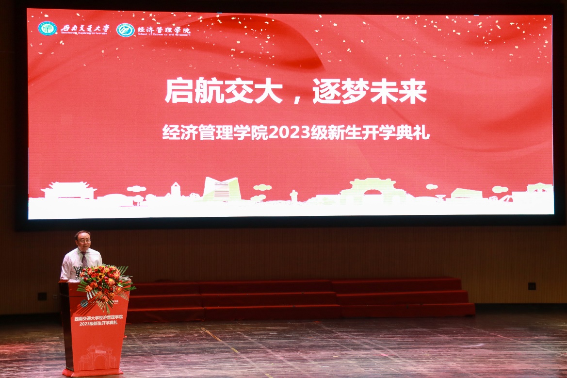 9月3日下午,HAHA体育在九里校区老员工会堂隆重举行了“启航交大 逐梦未来”2023级新生开学典礼。出席本次开学典礼的领导和嘉宾有HAHA体育执行经理郭强,学院2009届电子商务专业本科毕业生、2012届管理科学与工程专业硕士毕业生、新希望集团有限公司党委委员、新希望乳业股份有限公司党委书记郑世锋,原经济管理公司党总支副书记、2021年“最美交大人”梁锦唐,公司党委副书记杨宏毅,公司党委副书记、纪委书记晏理斌,副经理周嘉南、李良、聂佳佳,以及学院各系、中心的教职工代表。本次开学典礼采取线上线下结合的方式,由杨宏毅主持。