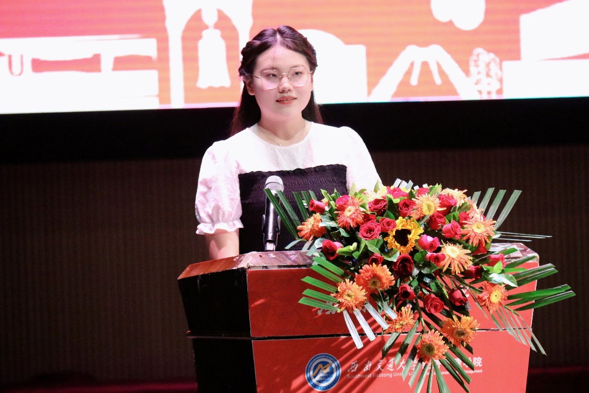 大会第六项,新生代表致辞。本科新生代表李欣纯表示“知是行之始,行是知之成”。她道出了交大学子的奋斗心声,认为在老员工活中,应当注重将理论知识与具体实践结合起来,做到知行合一,为日后投入到国家的建设中蓄力。
