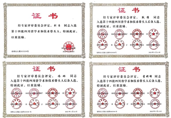 根据四川省人民政府《关于印发第十四批四川省学术和技术带头人名单的通知》(川府发〔2023〕13号),公司刘盾教授入选“第十四批四川省学术和技术带头人”,李妍峰教授、耿维副教授、冯琳副教授入选“第十四批四川省学术与技术带头人后备人选”。