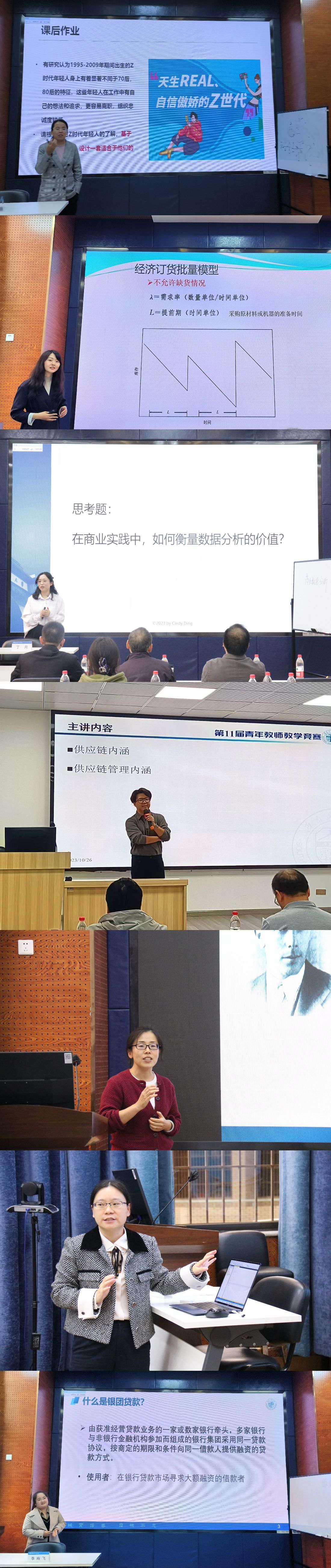 公司高度重视此次教学竞赛,通过前期广泛宣传动员各系共选送了17名青年教师参加学院初赛,参赛课程有《管理学原理》、《运筹学》、《微观经济学》、《精益生产会计学》、《商业银行经营与管理》、《供应链管理》、《应用统计》、《供应链管理》、《生产管理学》、《市场营销学》、《管理信息系统》等等涉及本、研层次的十几门专业基础课和专业课。本次教学竞赛分组进行,参赛老师们秉承着“上好一门课”的理念,充分地展示了教学内容并展现课程特色,代入感极强的案例教学、绘声绘色的内容讲解使得比赛现场精彩纷呈,充分展现公司青年教师的教学水平和风采。