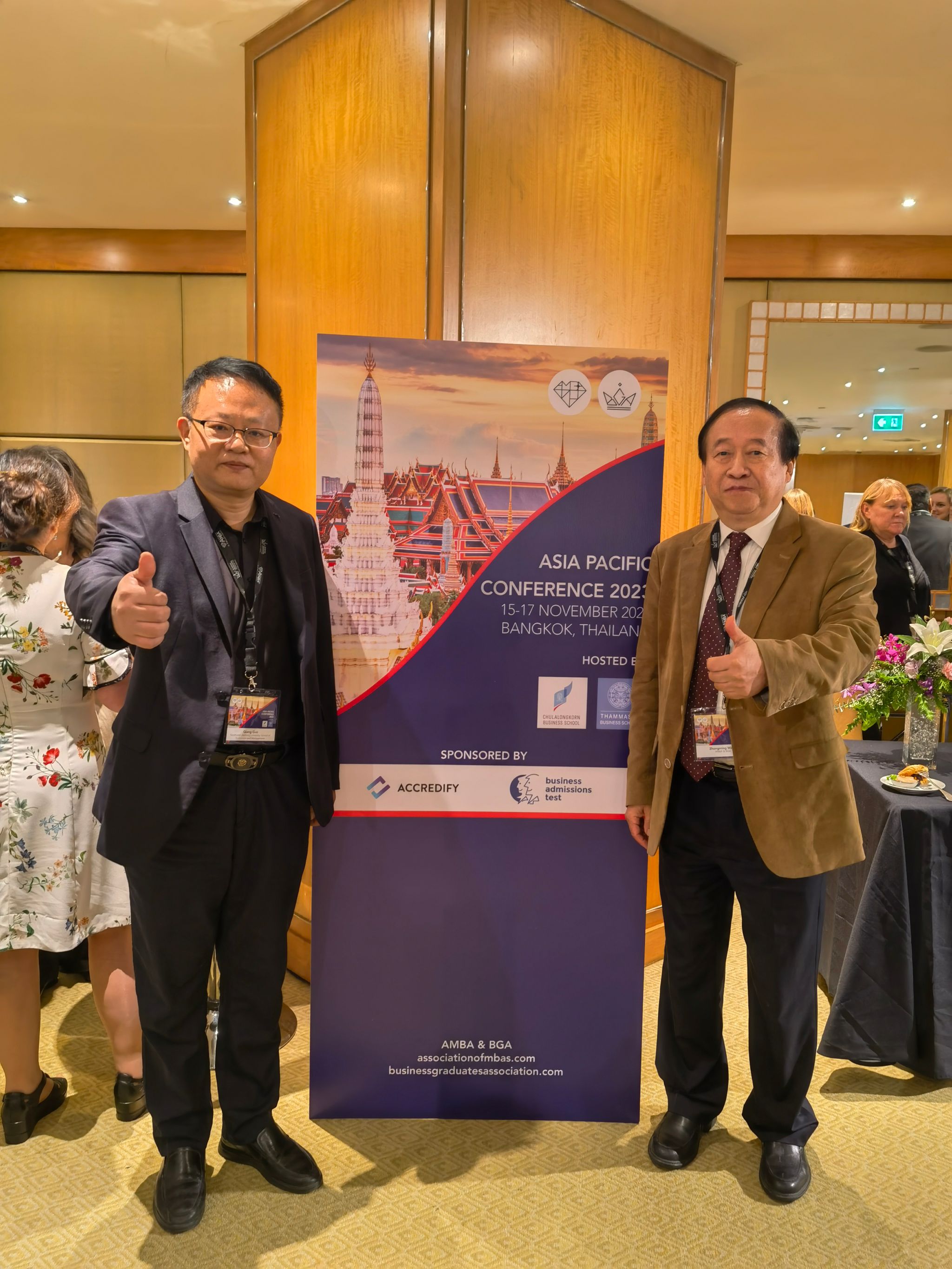 2023年11月14-17日,AMBA&BGA亚太区经理及主任会议在泰国曼谷召开,来自亚太区百余所商学院的代表出席了本次会议。与会代表深入探讨并分享了人工智能、全球领导力、可持续创新创业和领导力发展、MBA商业实战等与商学教育和发展相关的主题与实践经验。经济管理公司党委书记郭强、国际认证中心主任王一帆代表学院赴泰国参加了本次盛会。