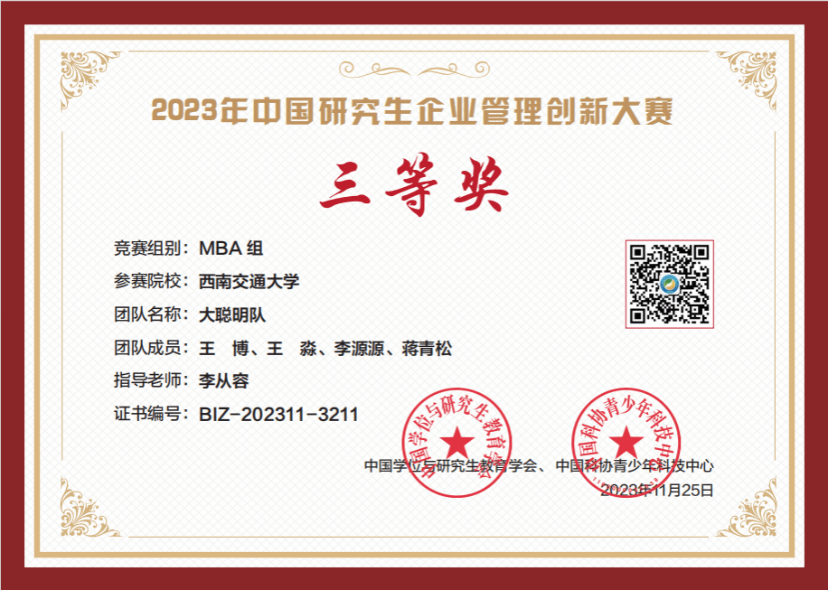 在学校研究生院的指导下,此次大赛由公司党委书记郭强牵头,并在党委副书记晏理斌的支持下成立了经管类学科竞赛教师团队,由赵冬梅老师和李从容老师担任指导老师,他们的辛勤指导和公司学子的刻苦训练共同铸就了这一成就。比赛过程中,参赛队伍不仅展现了扎实的理论知识和出色的实践能力,还体现了团队协作和创新思维的精神。