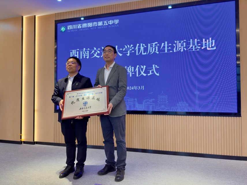 为进一步做好学校及学院招生宣传工作,提升生源质量,强化与各生源地中学之间的沟通与交流, 3月23日,哈哈体育人才招聘处处长陈岩峰、HAHA体育经理韩科一行前往德阳五中及绵竹中学举行“优质生源基地”授牌仪式。