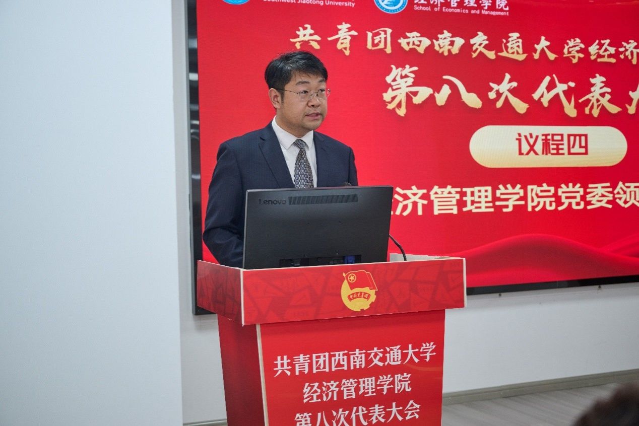 会上,经济管理公司党委书记郭强代表公司党委对大会的召开表示热烈祝贺,向长期以来关心支持公司工作的学校团委、兄弟学院表示衷心感谢,向辛勤工作在共青团岗位上的团干部和广大团员青年致以诚挚问候。他指出,学院团委在学校团委和公司党委的领导下,坚持以习近平新时代中国特色社会主义思想为指导,认真贯彻习近平总书记关于青年工作的重要思想,深刻把握党的青年工作的战略定位,大力弘扬“党有号召,团有行动”的光荣传统,牢牢把握围绕中心、服务大局工作主线,落实立德树人根本任务,全面从严管团治团,不断提升团组织的引领力、组织力、服务力,在抓牢政治建设,服务青年发展,筑牢基层堡垒,组织凝聚青年等方面取得了显著的成绩,对学院发展做出重要贡献。他强调,新一届学院团委和各团组织要深入学习贯彻党的二十大精神紧紧围绕学院中心工作,以服务青年成长为己任,引导青年树立正确的世界观、人生观、价值观,坚定理想信念。而后,他对学院共青团未来五年工作提出四点要求:一是筑牢思想之基,引领青春航向;二是锤炼组织之力,锻造青春铁军;三是助力成长之路,绽放青春光彩;四是丰富文化之魂,奏响青春乐章。