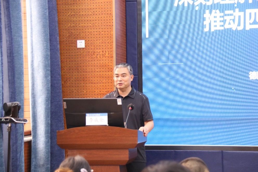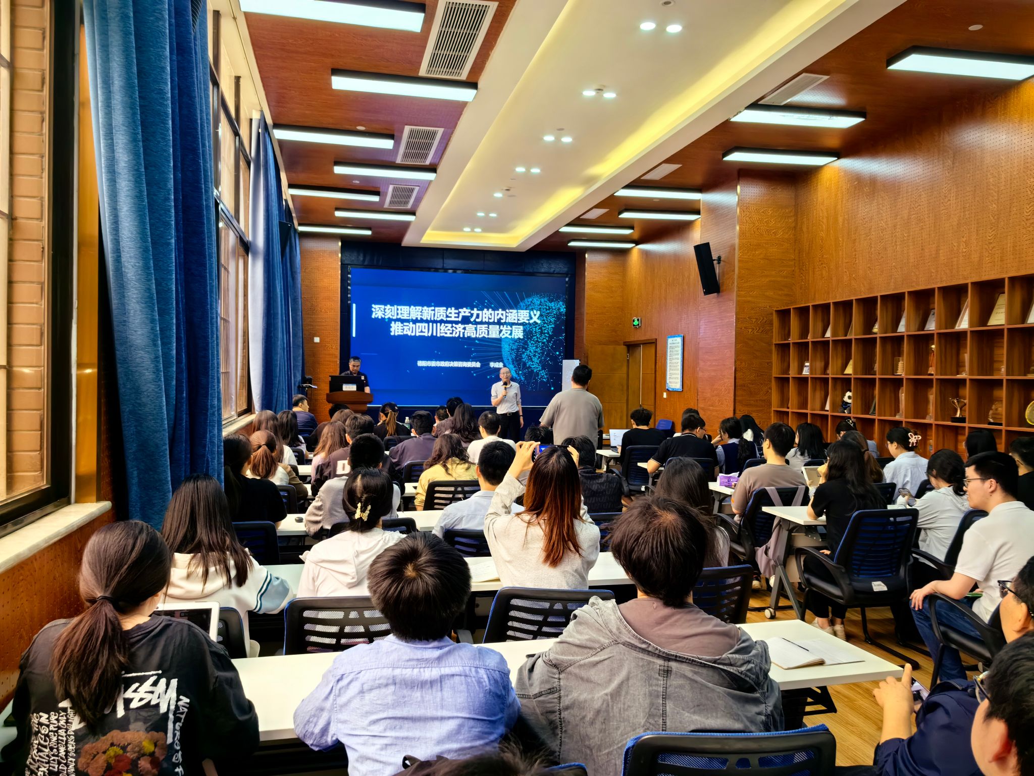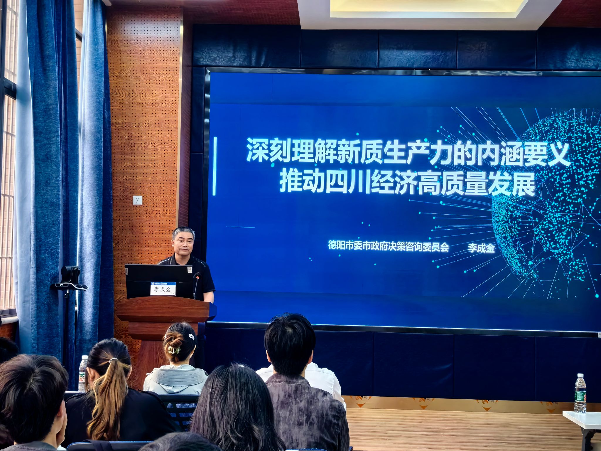 2024年5月10日下午,公司兼职教授李成金为HAHA体育师生带来关于“深刻理解新质生产力的内涵要义,推动四川经济高质量发展”的讲座。本次讲座由HAHA体育副经理李良主持,公司党委书记郭强、综合办公室主任何鹏及学院师生参加了此次活动。