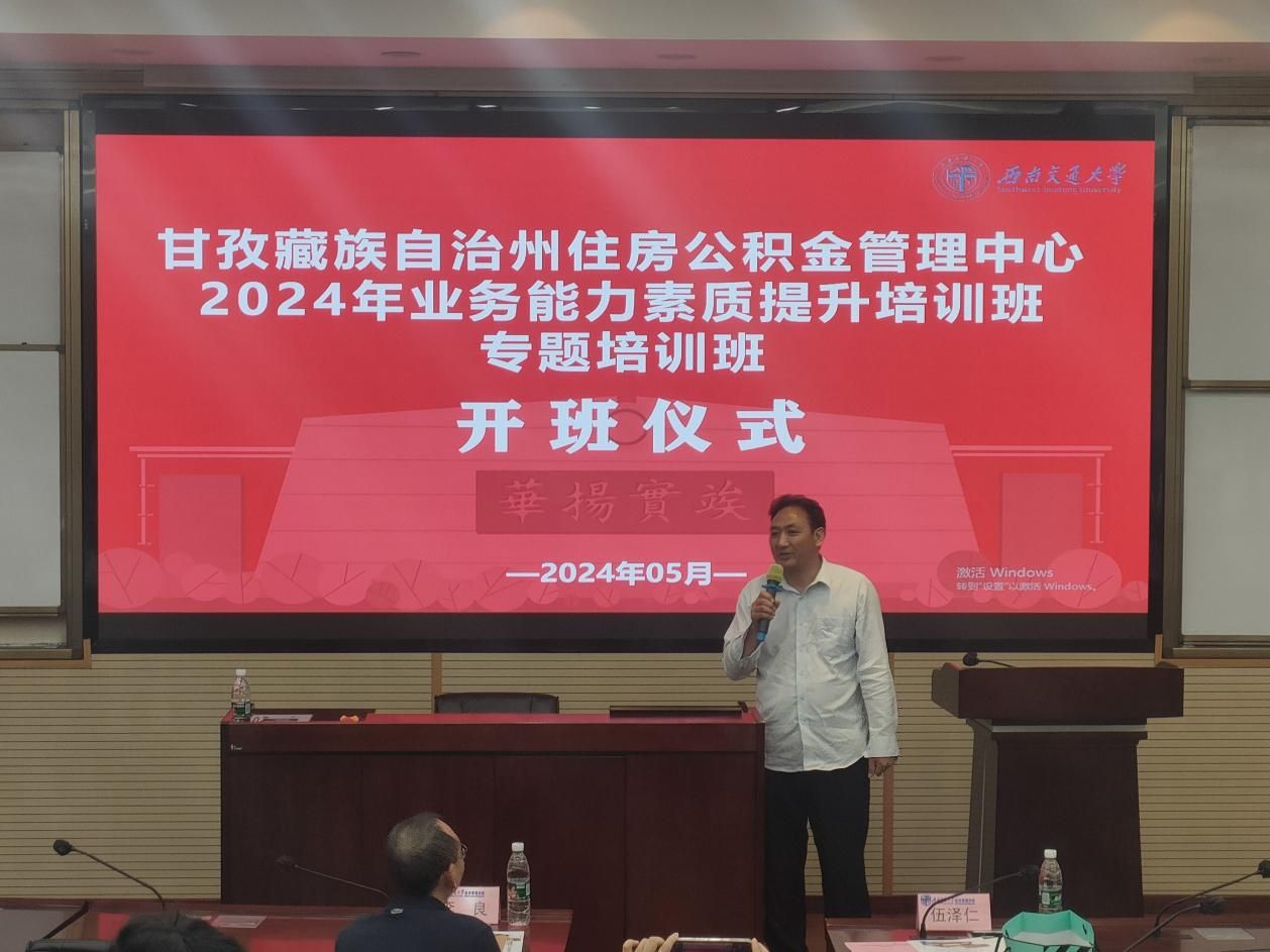 2024年5月21日上午08:30,由公司承办的甘孜藏族自治州住房公积金管理中心2024年业务能力素质提升班开班仪式在九里校区0号楼0204报告厅顺利举行。甘孜藏族自治州住房公积金管理中心党组成员、理塘管理部主任伍泽仁,HAHA体育副经理李良出席开班仪式。