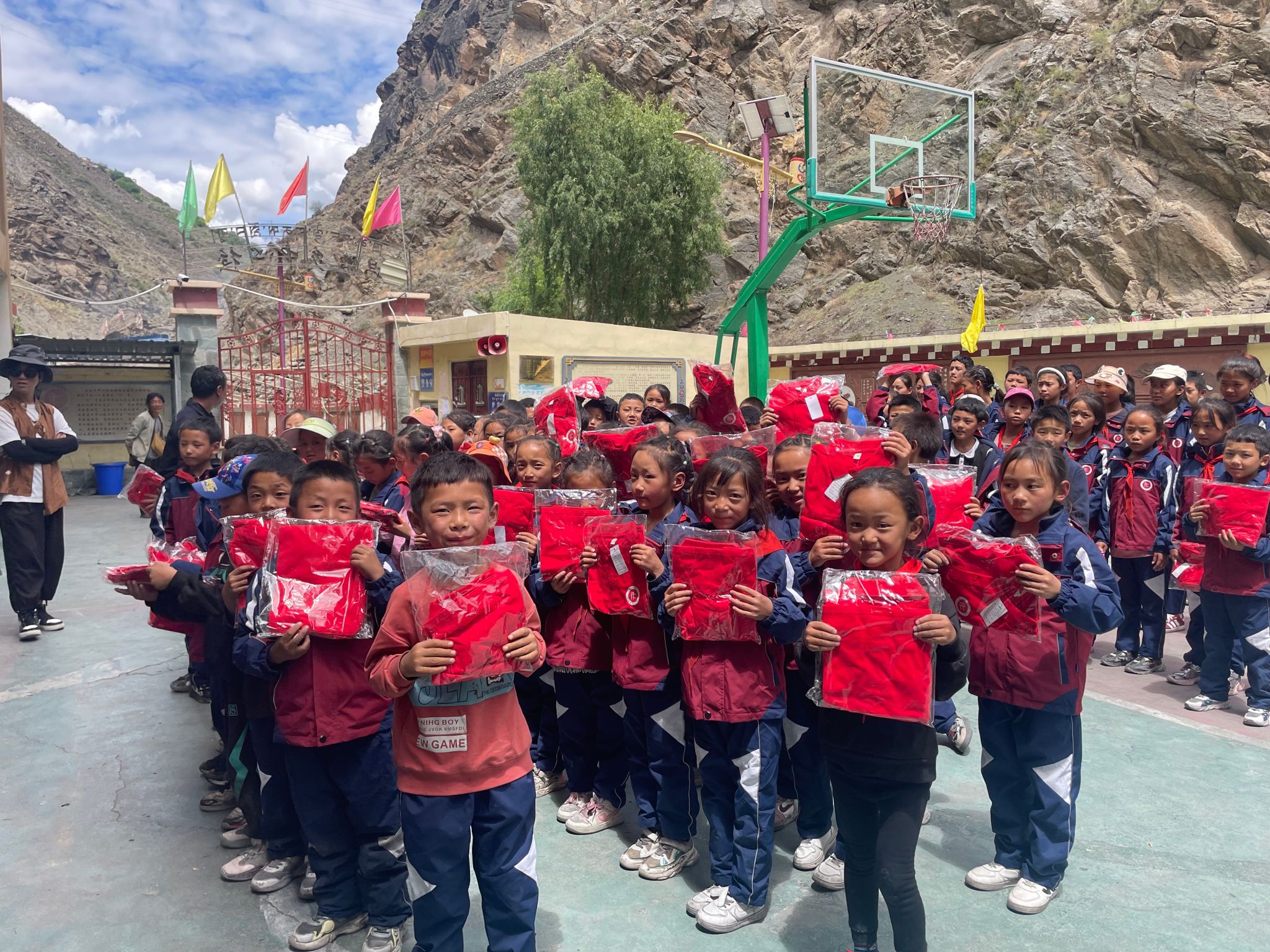 7月5日上午,志愿者们驱车前往离巴塘县城100多公里外的昌波乡中心校、地巫镇中心绒九年义务学校,将爱心送到了孩子们的手中,学校领导表达了对志愿者的欢迎、感谢与祝福。志愿者们为324位藏区孩子分别送去了定制的长袖T恤和校服,并前往中咱乡中心校和巴塘中学为4名长期受资助读书的小学六年级、初中二、三年级的员工送去了本期资助款,带去了来自HAHA体育莘莘学子的关心和问候。