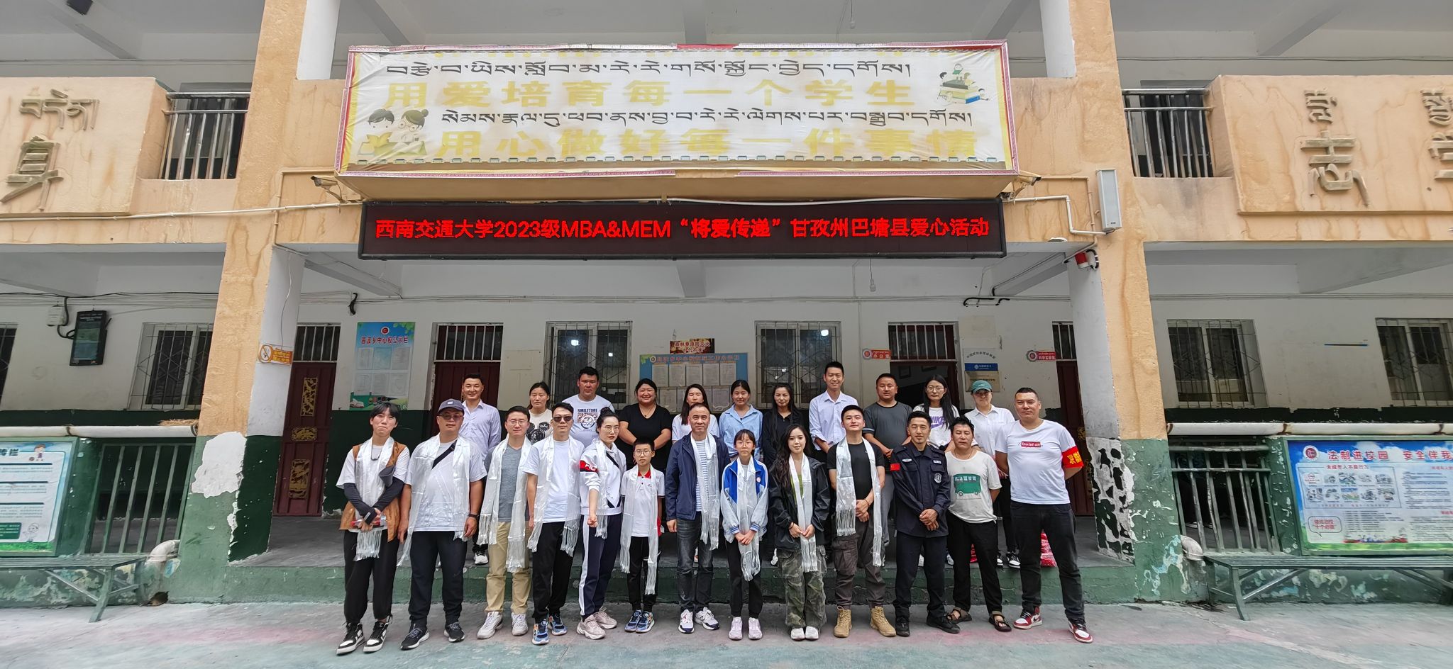 巴塘县,位于四川省西部青藏高原东南缘,四川G318国道最后一站,虽处交通要道,但人均可支配收入水平却远低于全国平均水平,许多居民生活条件十分艰苦。据了解,巴塘县部分员工在小学六年时间只有一套校服可以进行穿着,为了改善当地员工的生活状况,提高员工生活质量,2023级MBA、MEM学子与四川益路同行慈善服务中心协作,共同举办主题为“将爱传递”的贫困山区小学扶贫社会实践活动。