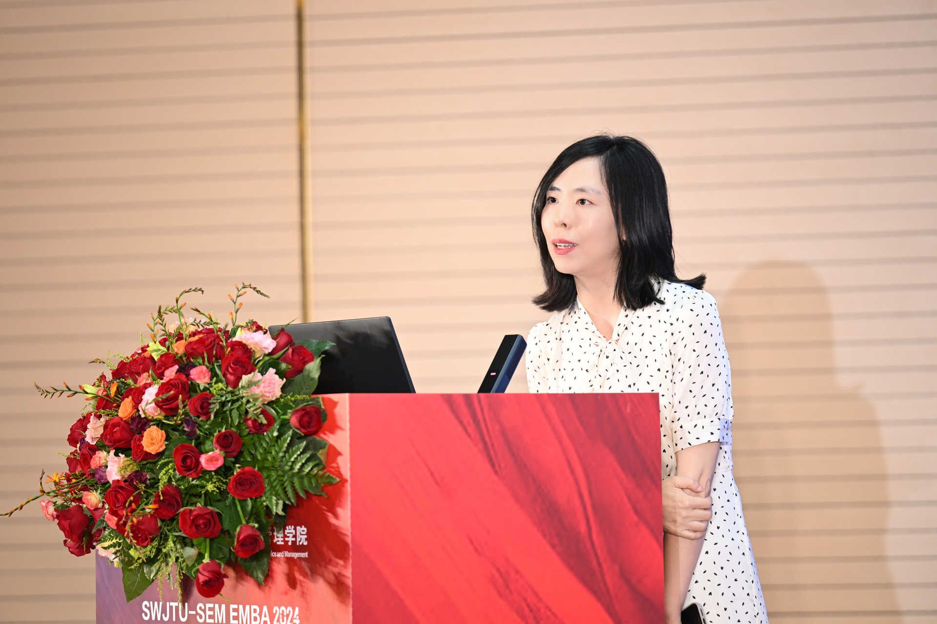 随后,公司党委副书记高平平致辞。他代表学校向2024级EMBA新生们表示了热烈的欢迎和衷心的祝贺。他指出,哈哈体育作为一所历史悠久、底蕴深厚的高等学府,一直以来致力于培养具有创新精神和社会责任感的高层次人才。他勉励新生们珍惜来之不易的学习机会,专注于学业,不断提升自我素质,努力做到学有所获、学有所成。他表示,EMBA项目不仅是一个学习知识的平台,更是一个提升个人素养和管理能力的关键阶段,希望同学们能够在学习中不断探索,勇于创新,将课堂所学转化为解决实际问题的能力,并在未来的职业生涯中做出卓越贡献。