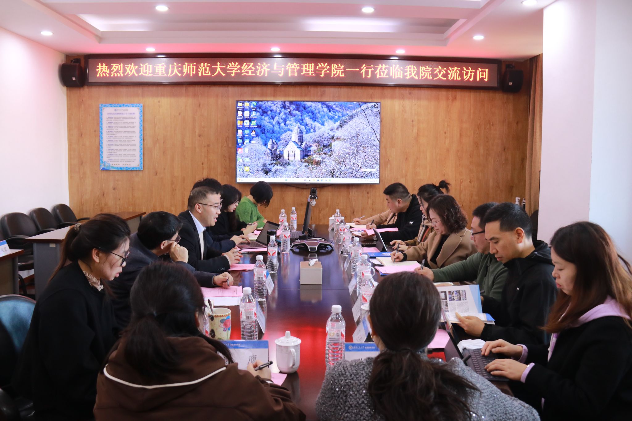 马锋副经理对重庆师范大学经济与管理学院一行的到访表示热烈欢迎。聂佳佳副经理就学院发展历程、人才培养、学科优势、科研工作做了详细介绍。