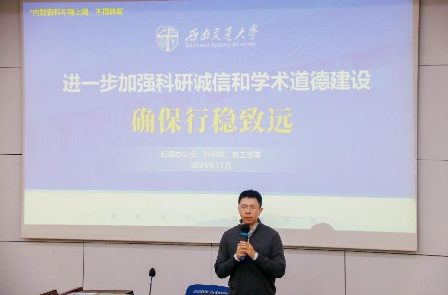 公司经理韩科针对全院专任教师群体,重点选择了科研项目投标,以及师德师风、科技评奖、科研经费管理、非职务违法犯罪等内容和校内外典型案例,开展警示教育宣讲。韩科强调,学院教师要坚守学术诚信和职业道德底线,坚决抵制任何形式的学术不端和违法违纪行为。