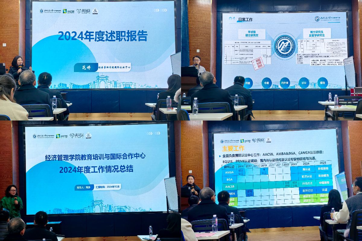 随后, 由各中心正副主任进行述职。学院研究生教育中心、旗下产业中心、专业学位教育中心、国际认证中心、国际交流与合作中心、实验中心等部门的正副负责人对主要工作、亮点与成绩、不足与改进和未来规划进行陈述。