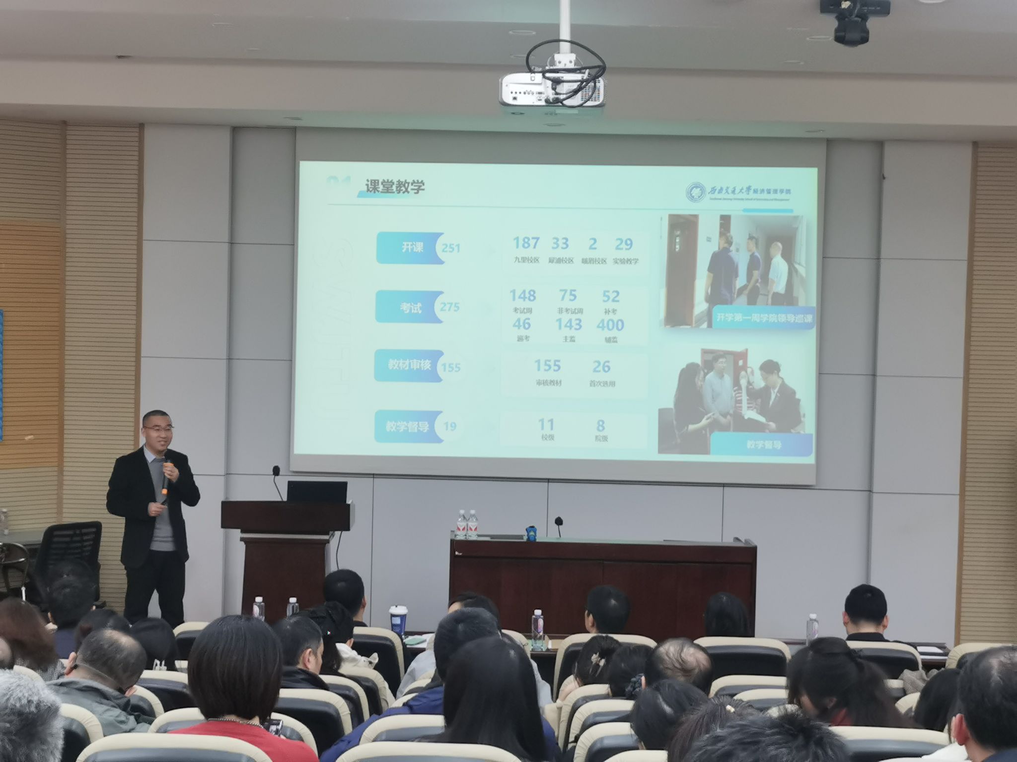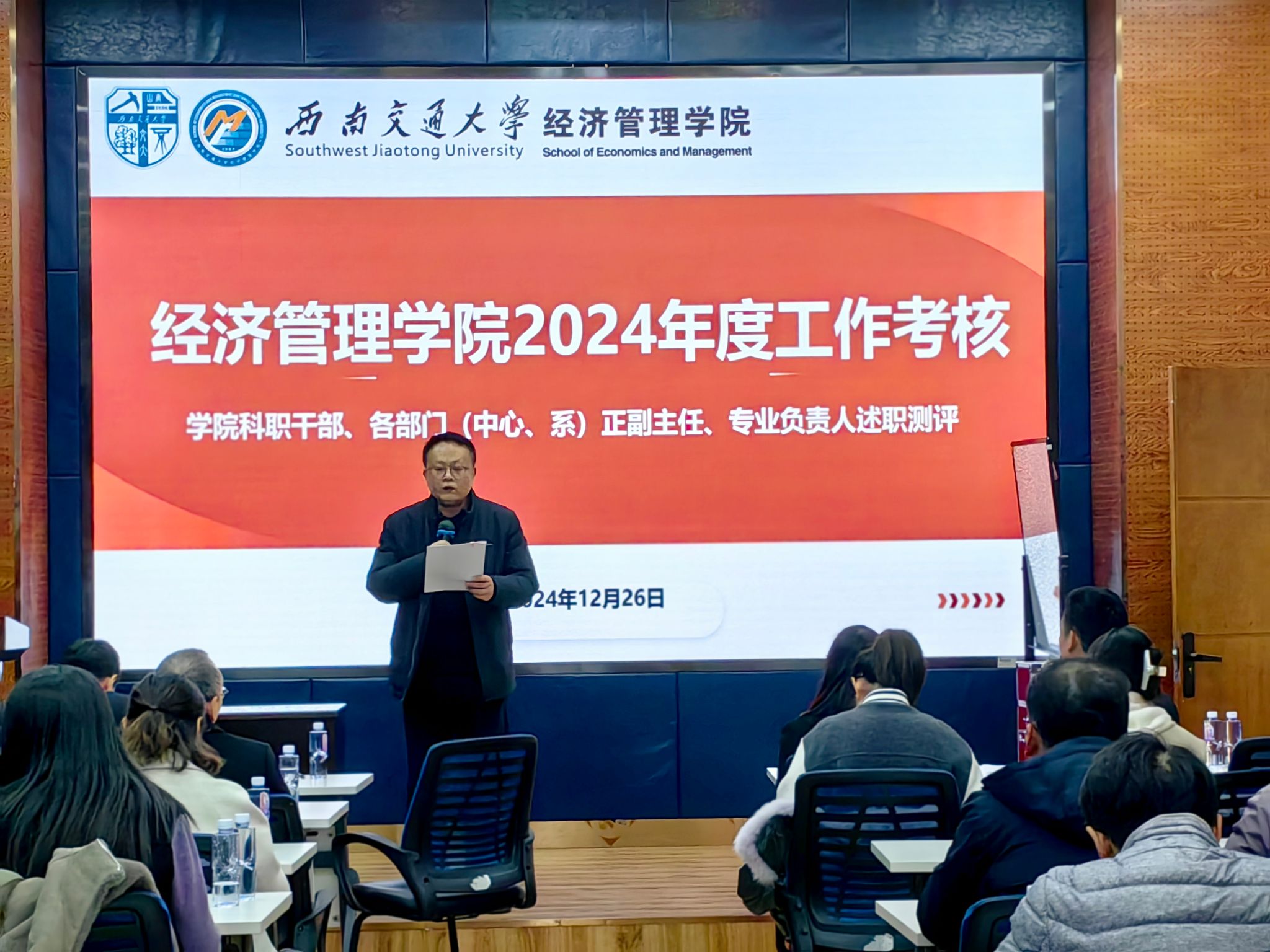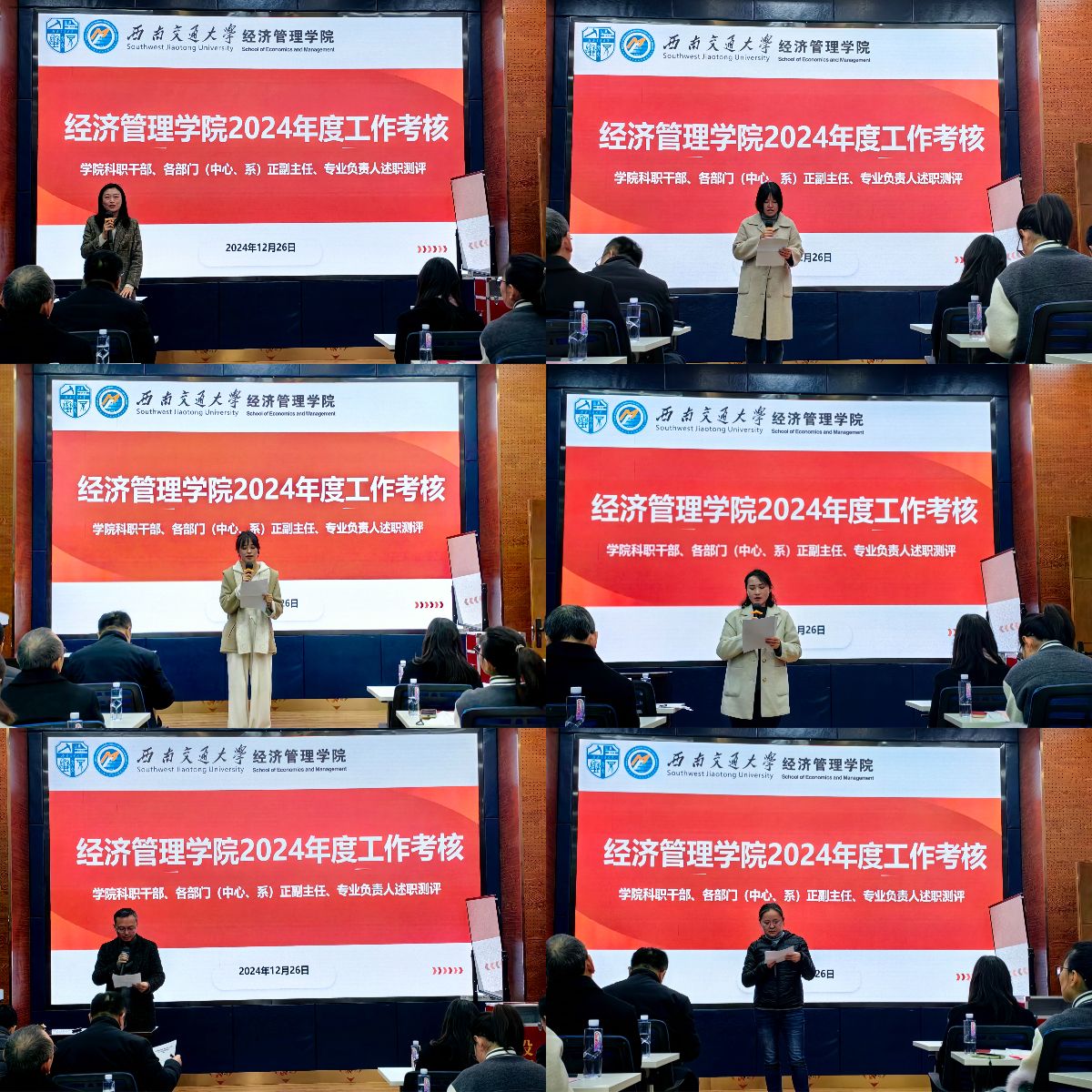最后,各学系正副主任、专业负责人进行述职,会计学系、工程管理系、金融与财务学系、信息系统与运营管理系、市场学系、创新创业与管理学系、经济学系正副主任依次汇报本年度工作。