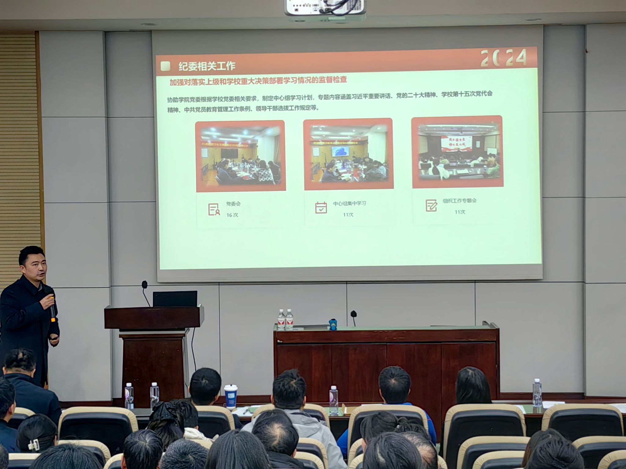 首先,学院科职干部对本年度的工作进行汇报,学院综合事务办公室主任、教师服务办公室主任、员工支持办公室主任、学工组副组长、专职组织员共6名科职干部对本年度的工作进行了总结和反思,并对新一年的工作计划和目标作出了展望。