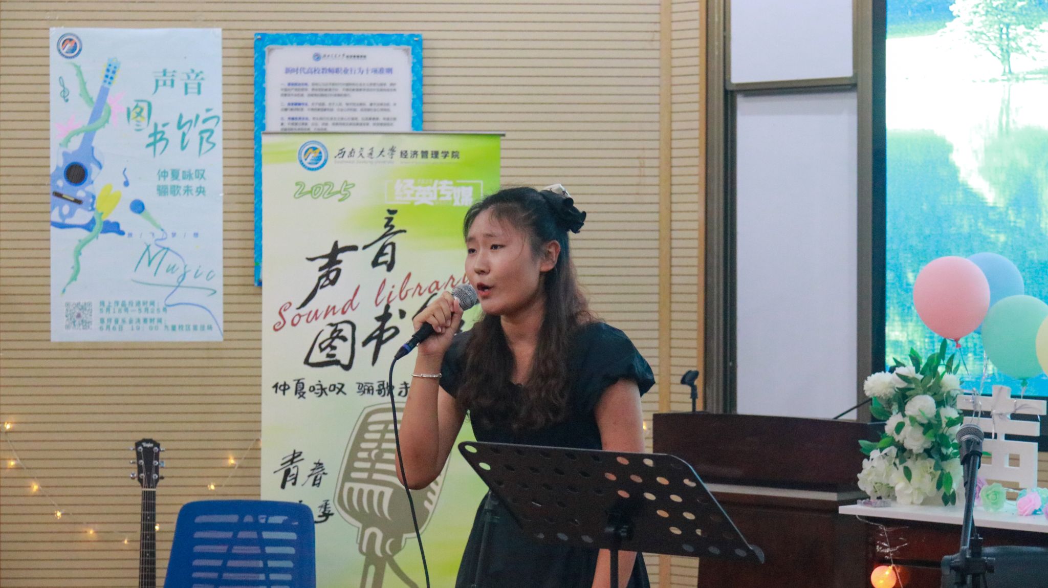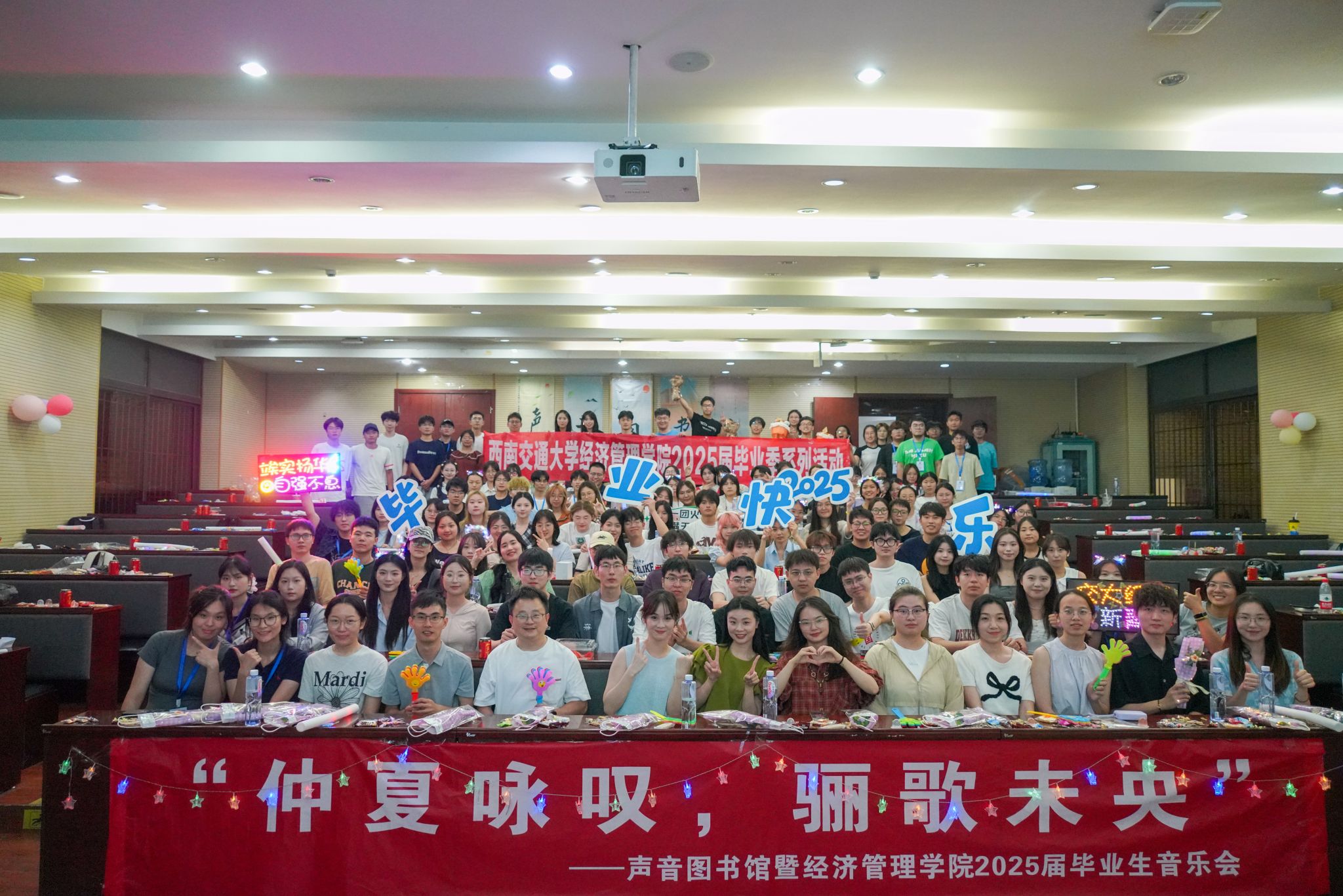 夏夜未央,蝉鸣依旧。2025年6月6日,2025年度毕业歌会在九里校区0号教学楼0202室举行,一场属于音乐与美的盛典正于此款款上演。经济管理公司党委书记蒋佳,党委副书记余小英,交大之声台长万玘玥,学院辅导员老师与学院同学们在音乐里共话情谊。