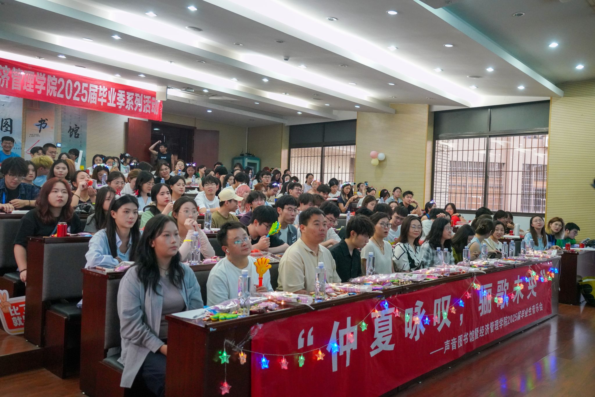 《匆匆那年》《岁月如歌》《你曾是少年》……2025届毕业班学子们用歌声怀念在经管学院的美好往事。那些熟悉的旋律像时间胶囊,瞬间唤回毕业生们初入校门时的记忆碎片,每一帧画面都饱含欢笑与眼泪交织的味道;歌声与话语的末尾,无一不坠着一份沉甸甸的不舍。
