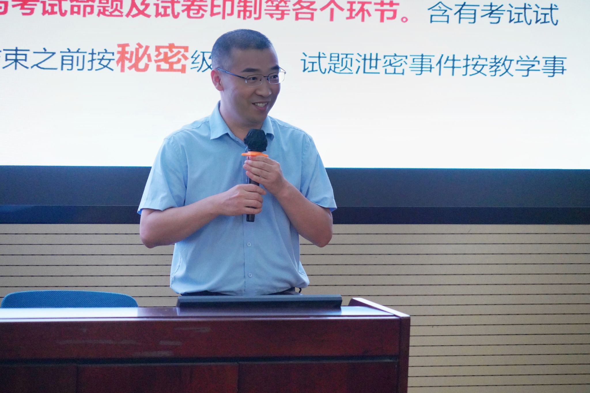 紧接着,公司党委书记蒋佳开展保密专题培训。蒋佳系统解读了《保密工作十二条违规行为清单》,结合真实案例剖析泄密风险,强调全体教职工需强化保密意识,将保密要求贯穿教学科研全过程,为学院各项工作的安全、有序开展筑牢防线。