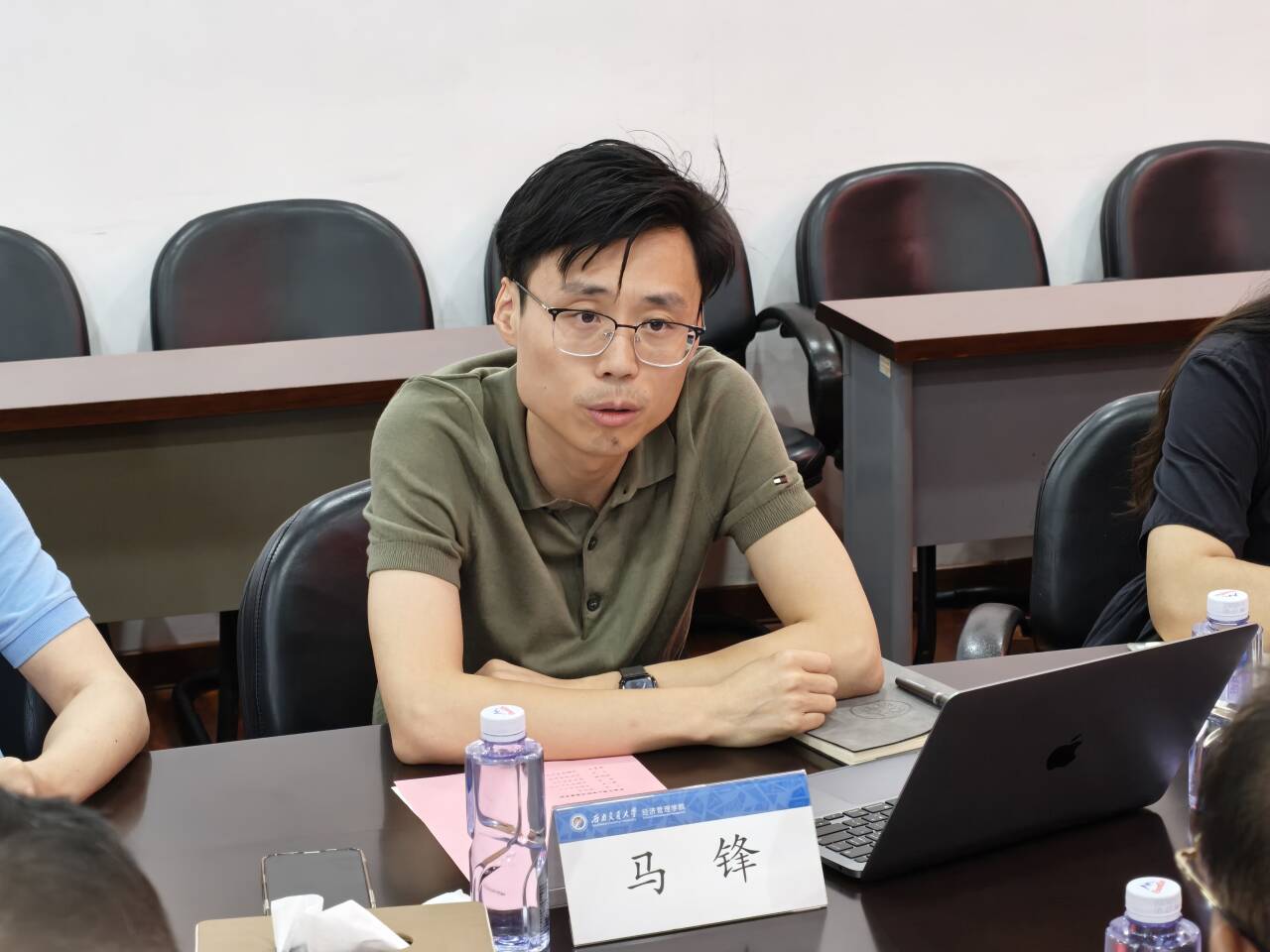 会议伊始,学院副经理马锋对九江学院经济学院一行来访表示诚挚欢迎,介绍了学院发展历程、人才培养、学科科研等方面的情况,并期望通过此次深入交流,促进思想的碰撞与交融,共同推进双方进步与创新发展。