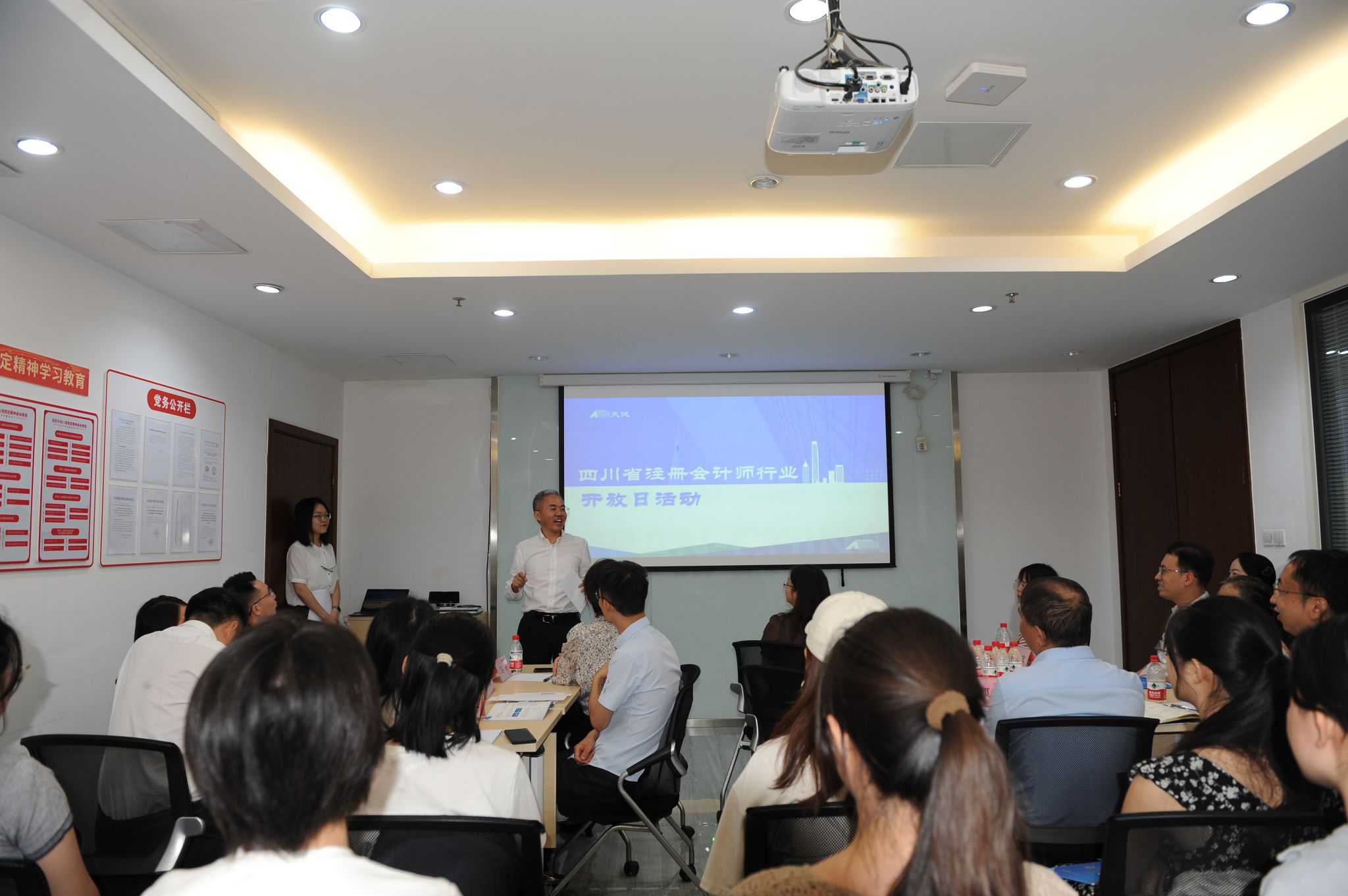 参观结束后,师生落座会议室,与事务所工作人员展开交流讨论。四川省注册会计师协会秘书长颜彦鼓励青年在会计行业坚守深耕,铸就复合型专业能力;四川分所总经理阮响华剖析了当今会计行业数字化转型以及行业边界模糊化的趋势,向交大学子发出实践邀请。随后,学院会计系主任叶勇介绍了学院会计专业的发展历史,期待通过本次交流参访进一步深化校企合作,为员工打开广阔的实践平台。