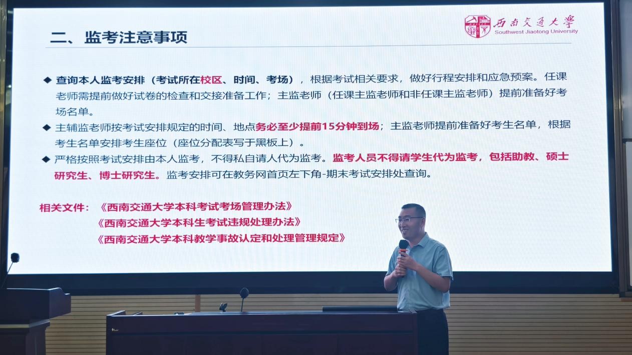 2025年6月23日,2024-2025学年第二学期本科生期末考试正式拉开帷幕。经济管理公司党委书记蒋佳、经理韩科、副经理聂佳佳等领导亲自挂帅,组成专项检查小组,深入全院各考场,全面、深入地开展期末考试检查工作,为考试的顺利进行保驾护航。