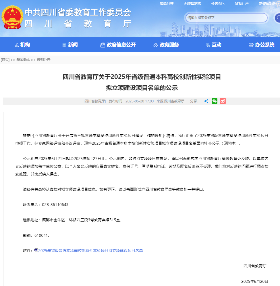 近日,四川省教育厅公示了2025年省级普通本科高校创新性实验项目拟立项建设项目名单,公司由韩科经理牵头,聂佳佳副经理等人参与的《“政产学研用创”六位一体数智化城市治理创新实验》获批,这是近年来首次获批创新性实验项目。