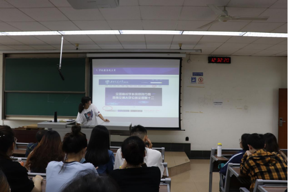 炼一等品行,经世致用。苏老师为我们展示了往届毕业生升学和签约单位情况,希望能给大家带来一定参考,激励大家飞得更高、走得更远。在大二学年,19级的同学们不仅在学业上有所收获,更亲身投入社会实践,用双手创造,用心感受。本次大会由19级的六位同学进行了暑期实习实践分享,他们有的进入一流地产公司,对行业现状有了一定的了解,明确了自己未来的道路;有的走进金融投行领域,在一个月的学习体会下,自己完成了公司交予的任务,成长颇多;有的走上街头,随访市民,近距离探究成渝双城经济圈未来发展;有的走向乡村,深刻领悟扶贫工作的意义。其中,黄纪凯、凌川奇两位同学给大家分享了自己的实习经验,谈到一些面试相关的小技巧时同学们也认真地做着记录。