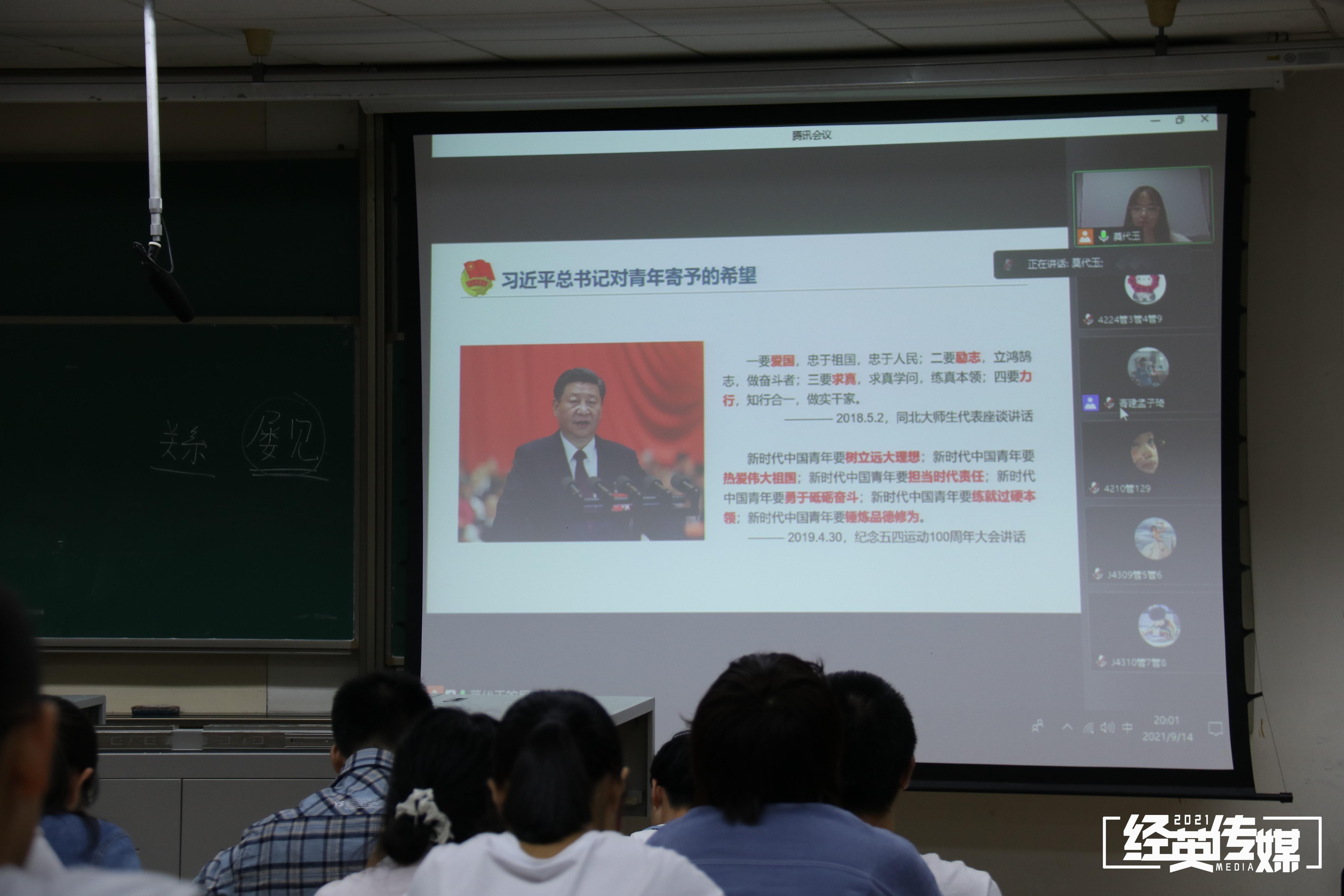 9月15日下午7点30分,在哈哈体育九里校区准时举办了2021级新生第一堂团课。此次团课由本科2021级辅导员莫代玉担任主讲人,大会内容共分为五部分。