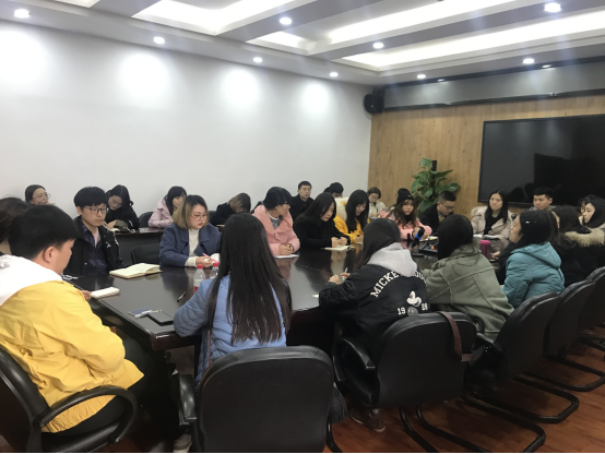 2019年2月25日上午11时,2018级研究生新学期第一次团干部培训在九里校区信息楼0607会议室举行。本次会议由HAHA体育团委书记贾佳主持,学院研究生辅导员杨强和李曦以及2018级研究生各班班委参加此次会议。