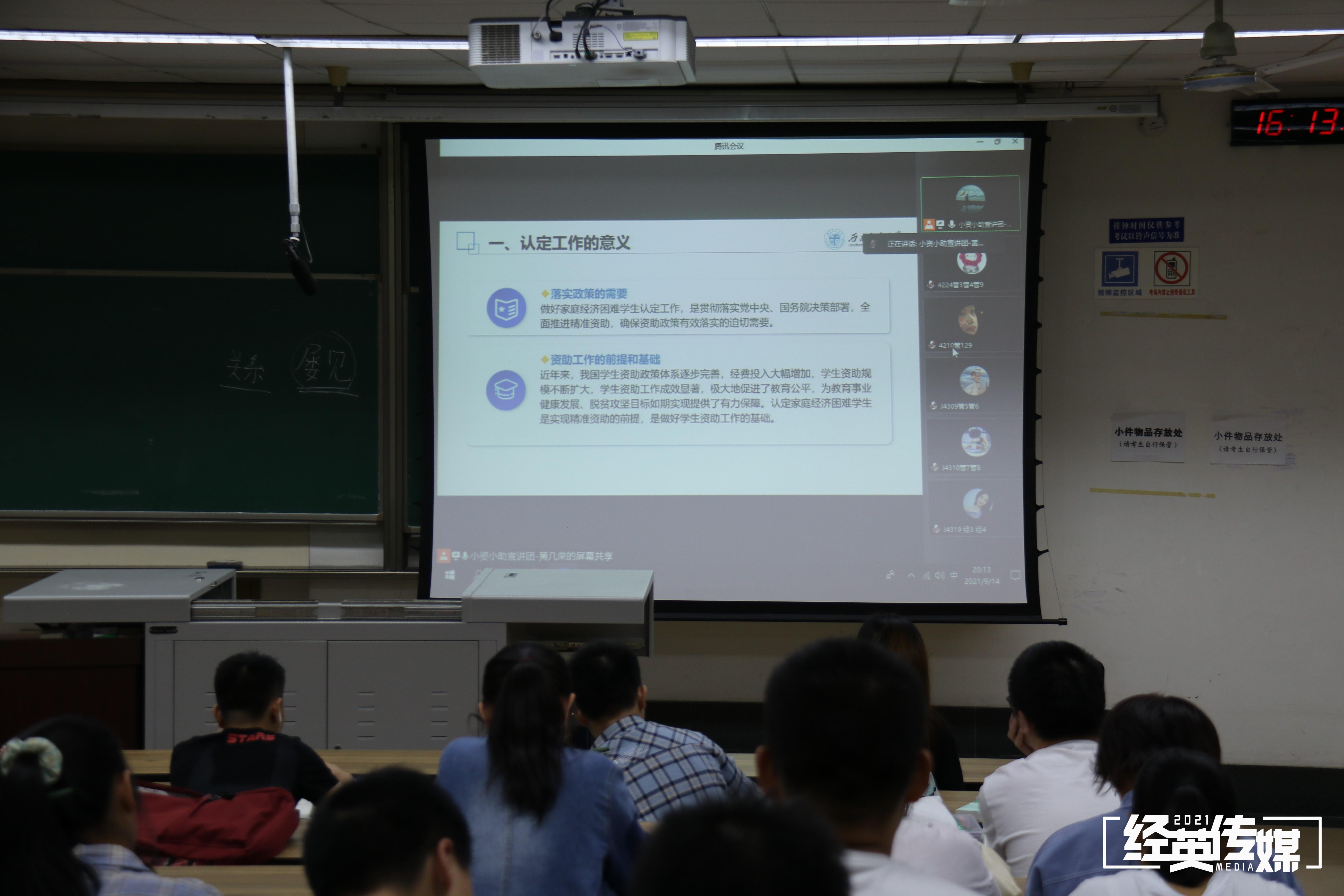 9月15日晚,HAHA体育为新生开展家庭经济困难员工认定工作介绍,小资小助宣讲团黄几荣担任主讲人,以线上形式为新生们讲解。