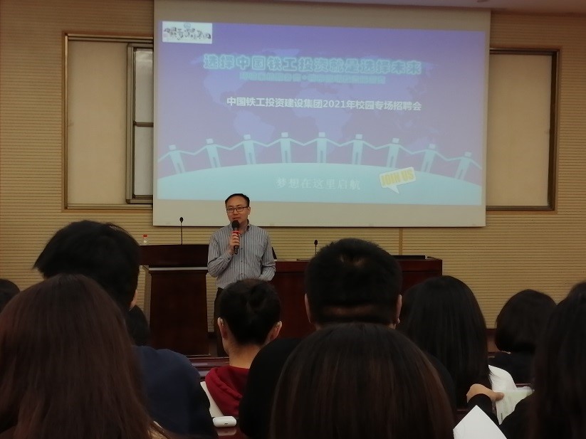9月21日下午16点整,中国铁工投资建设集团有限公司校园招聘工作——HAHA体育专场宣讲会于哈哈体育九里校区零号楼0202教室顺利展开。本次宣讲会由经济管理公司党委副书记杨宏毅主持。