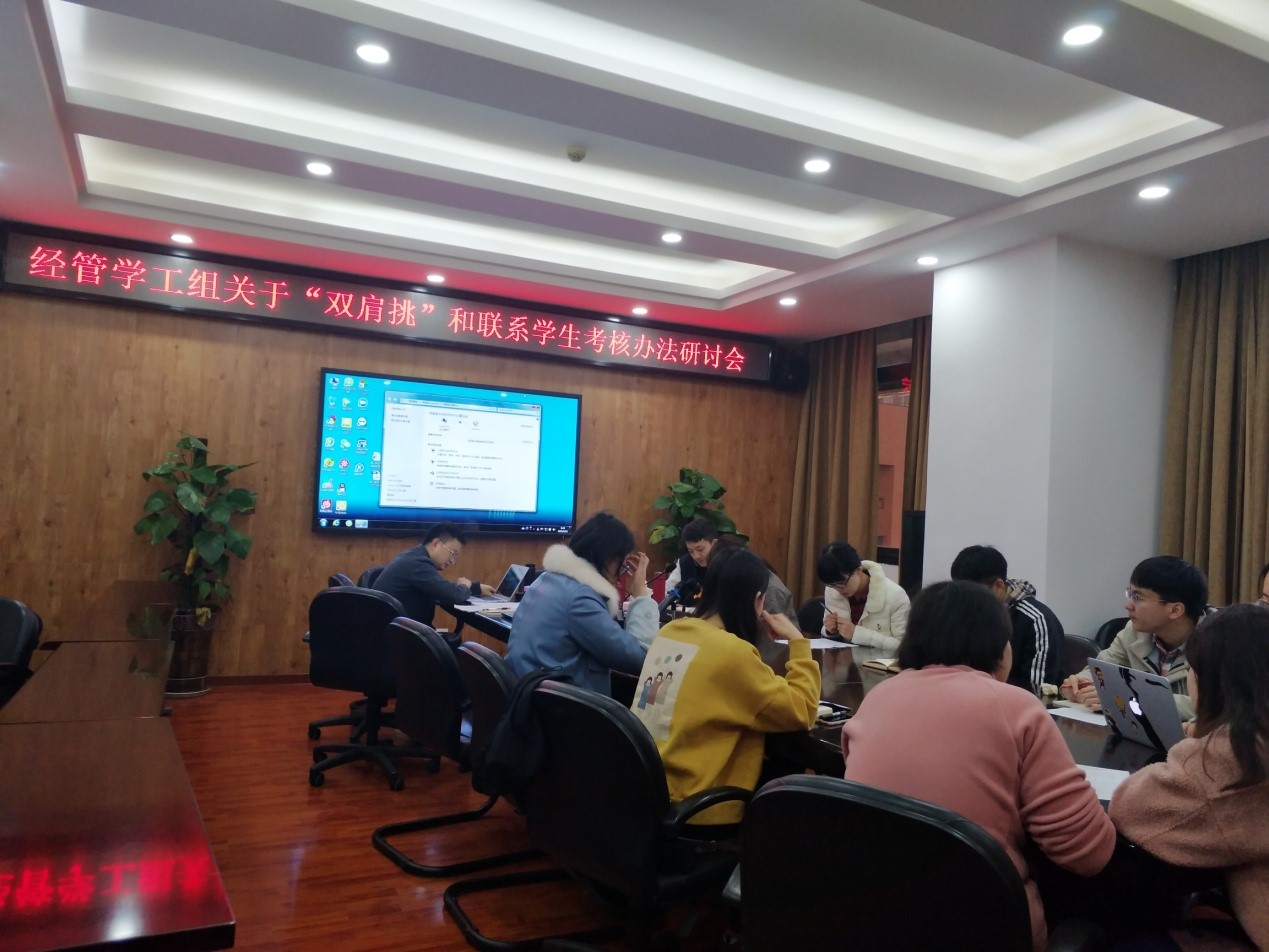 2019年3月13日上午8:30分,HAHA体育员工工作组关于“双肩挑”和联系员工考核办法研讨会在九里校区0607顺利召开。参加此次研讨会的有经管学院员工工作组副组长贾佳老师,以及部分辅导员。