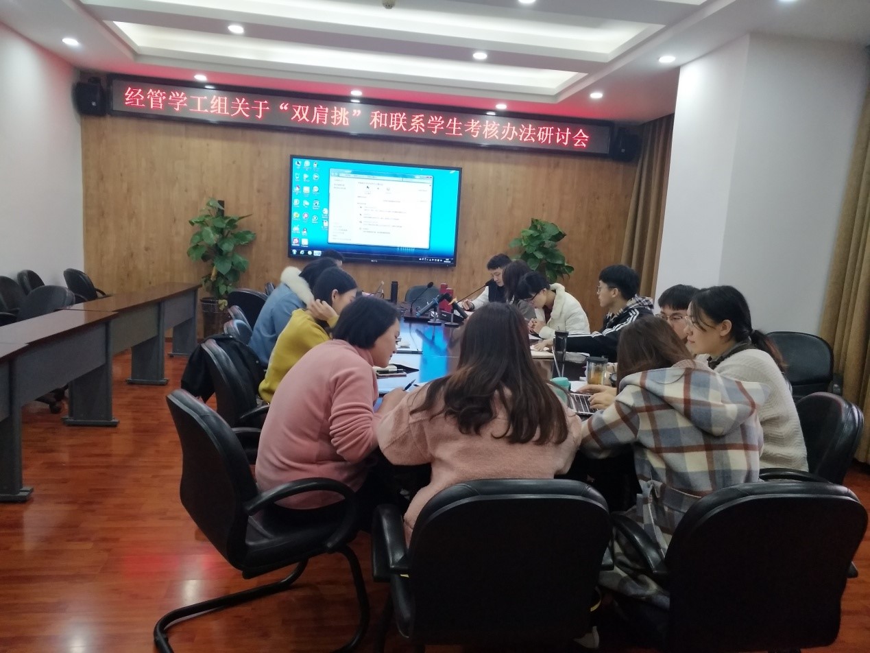 首先在贾佳老师的主持下,大家对《中共哈哈体育委员会关于进一步加强辅导员深入员工联系员工工作管理考核办法》和《哈哈体育专职辅导员“双肩挑”资格认定及薪酬管理办法》进行了认真地学习讨论,各位辅导员根据自身实际情况对《办法》提出修改意见。接下来,贾老师和大家讨论了关于经管学院员工组织举办各类活动时所出现的问题,以及解决办法。