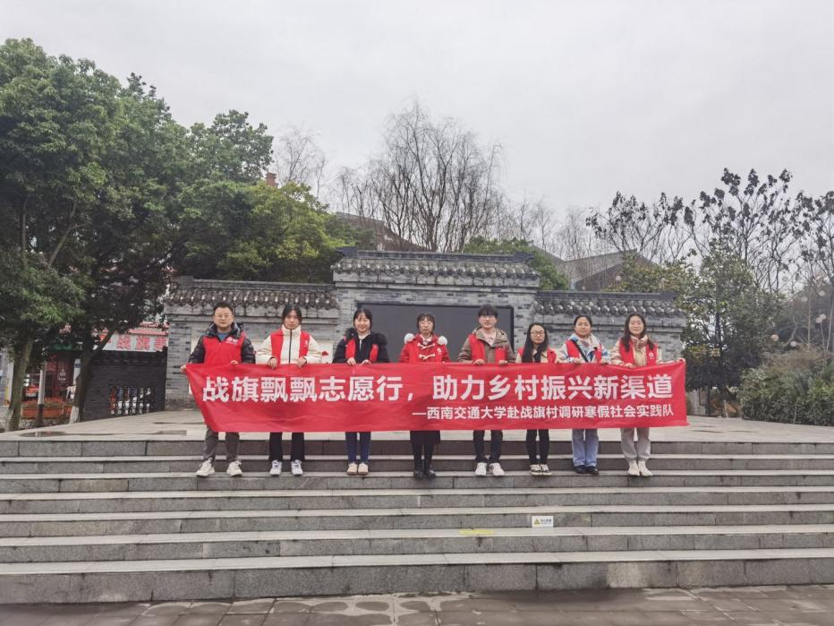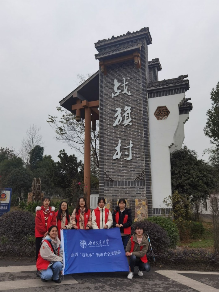 在这三天里,实践队先后参观了党建馆、村史馆、乡村十八坊、郫县豆瓣博物馆、战旗社区等地点,从“旅游、休闲、餐饮、民宿”等角度拍摄了战旗特色宣传视频;拜访了战旗村直播实训基地负责人,学习了直播的相关知识,观摩了百村干部齐晒好年货直播讲解。2022年1月10日下午两点半,实践队进行了一小时的现场直播,通过直播镜头向西南交大的师生们介绍了战旗村的发展历史、美丽乡村现状和乡村十八坊的特色产品,展示了一堂生动的乡村振兴实践课,得到了观众们的一致好评。在采访当地党委干部、手工艺人、商家和居民的过程中,实践队从不同视角体会到了战旗村的变化、战旗特色产业发展和美丽乡村建设。