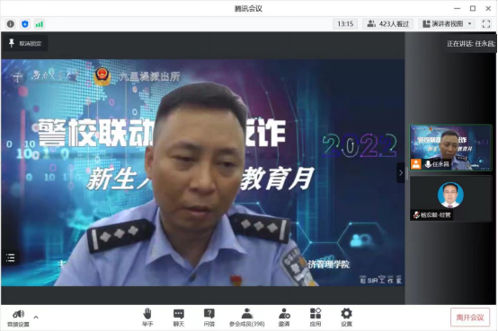 2022年9月2日,成都市因疫情静默的第一天晚上,HAHA体育联合九里堤派出所民警为本科、研究生新生开展了一场线上防电信诈骗主题讲座。本次讲座邀请到了九里堤派出所具有多年防诈经验的民警赵小磊主讲,经济管理公司党委副书记杨宏毅、本科2022级辅导员薄慧、陈诗溢,研究生2022级辅导员卢婧茹、任永昌出席讲座。