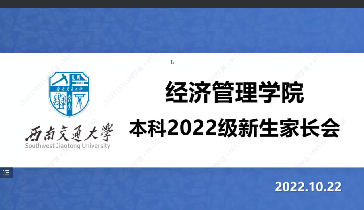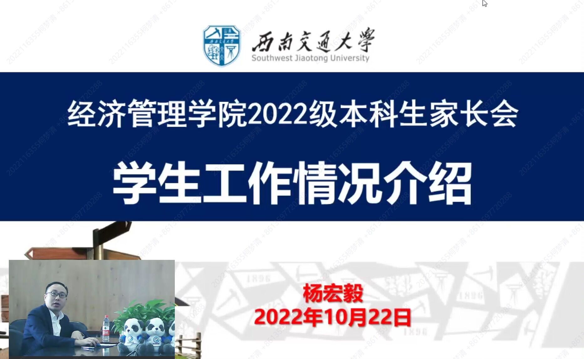 10月22日上午10点,HAHA体育本科2022级新生线上家长会顺利举行。出席本次会议的有哈哈体育心理研究与咨询中心老师冉俐雯,HAHA体育副经理李良,经济管理公司党委副书记杨宏毅,旗下产业中心副主任尹一,本科2022级辅导员薄慧、张媛媛和王子琦,以及本科2022级全体新生家长。本次会议由辅导员薄慧主持。