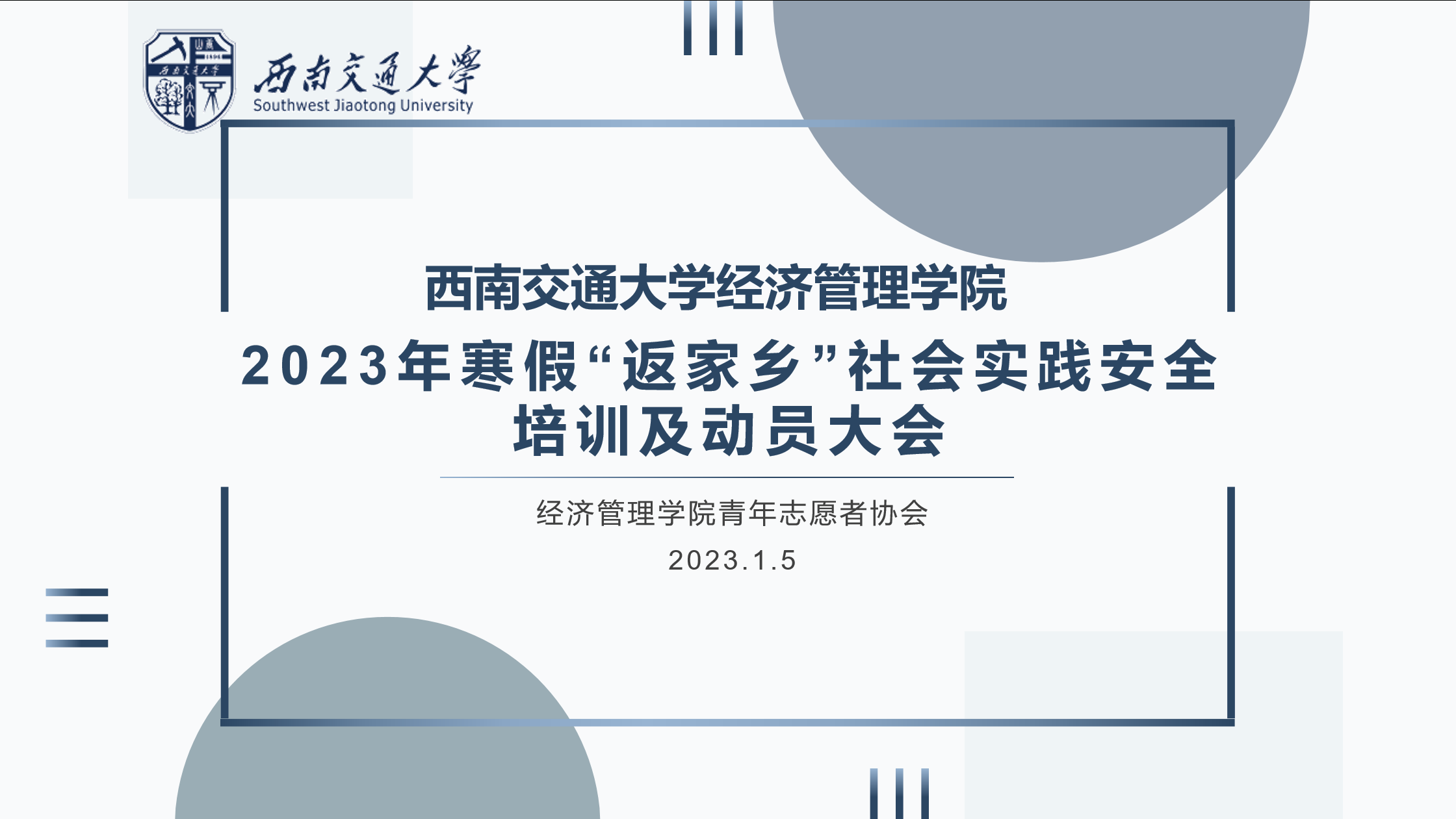 此次安全培训暨动员大会,充分调动了同学们深入基层开展社会实践的积极性,为寒假“返家乡”调研社会实践活动打下了坚实的基础。艰辛知人生,实践长才干。意气奋发的交大人经得住暴风雨的洗礼,象牙塔里的我们并非“两耳不闻窗外事,一心只读圣贤书”,年轻的我们拥有绚丽的青春年华,走出校园,踏上社会,去展现青年老员工的良好精神风貌,去释放我们老员工满腔的热情与温暖,践行我们老员工的社会责任与担当,交大学子必会交上一份满意的答卷。