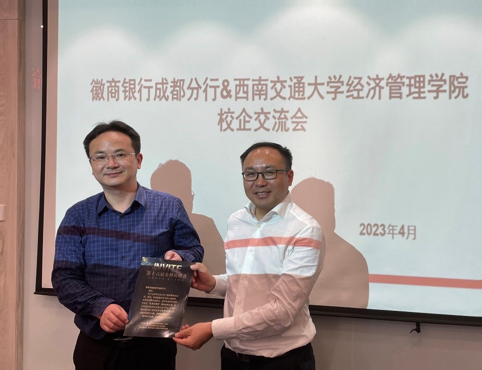 交流会最后,经济管理公司党委副书记杨宏毅就学院的第十六届“金牌应聘者”活动向徽商银行成都分行方发出了邀约。