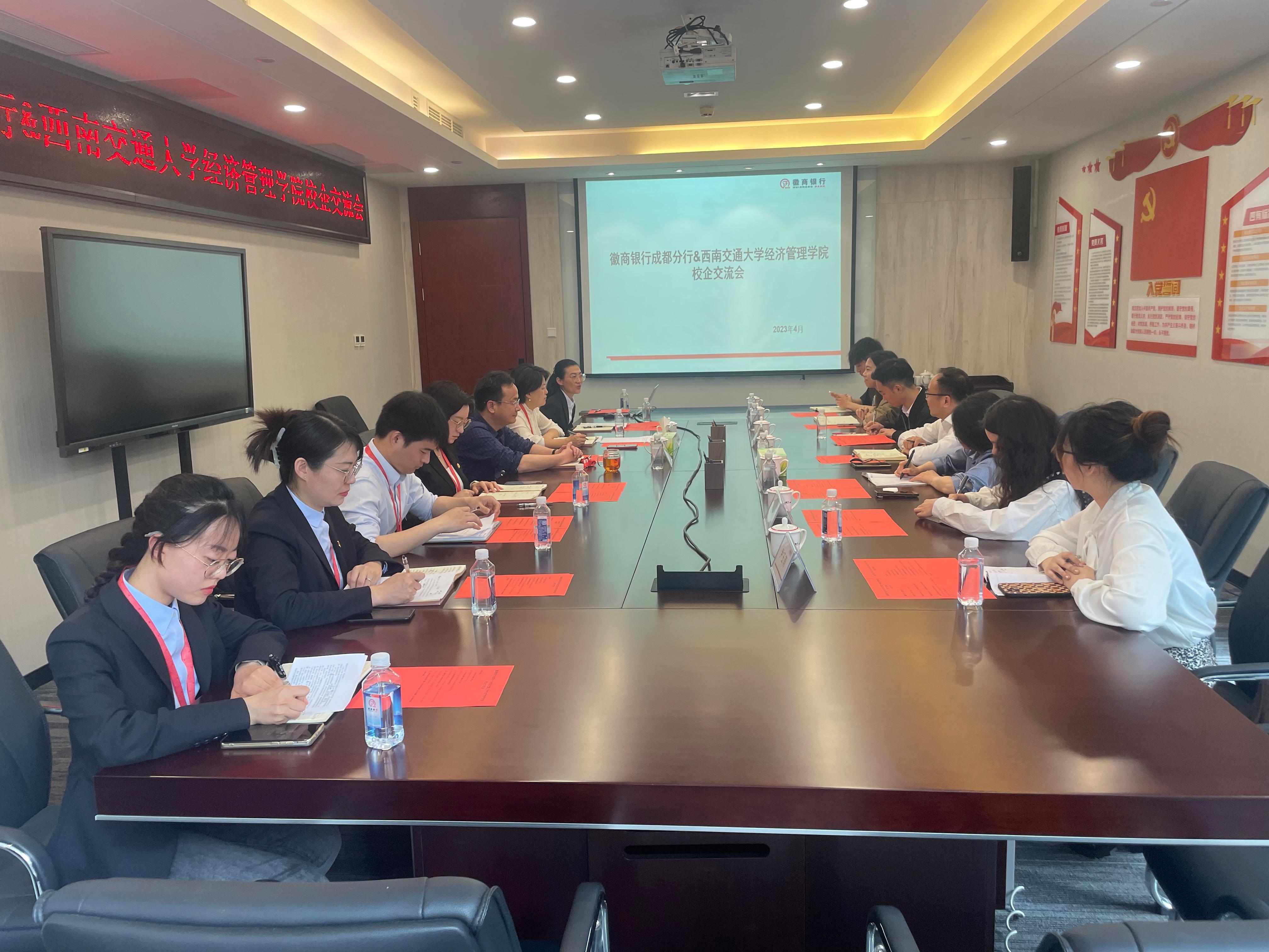 为贯彻落实教育部、省教育厅关于“访企拓岗促就业”专项行动工作部署,拓宽毕业生就业渠道和资源,全力促进毕业生更加充分更高质量就业,2023年4月12日,由经济管理公司党委副书记杨宏毅带队的访企拓岗小组前往徽商银行成都分行进行企业走访并开展校企交流活动。