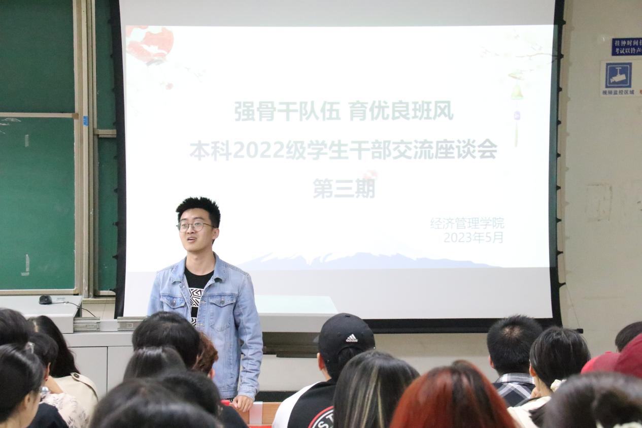 为弘扬“万众一心、众志成城,不畏艰险、百折不挠,以人为本、尊重科学”的伟大抗震救灾精神,全方位培育先进班集体,加强班级凝聚力,5月11日下午,HAHA体育本科2022级“强骨干队伍 育优良班风”员工干部交流座谈会第三期在九里校区J4223举行,本科2022级辅导员及全体班委参加,本期座谈会由辅导员王子琦主持。