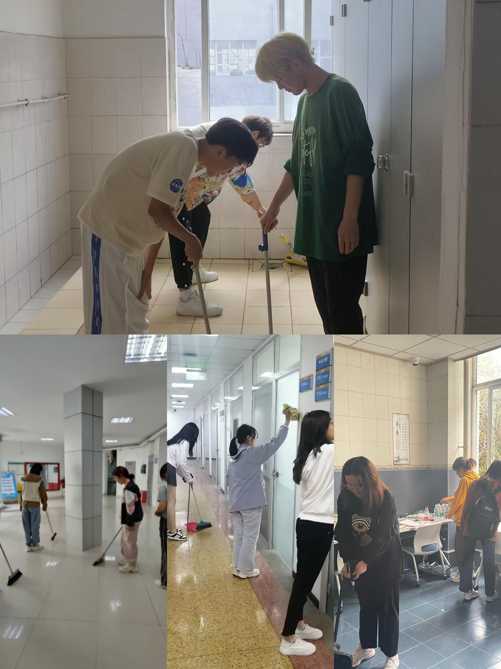 仲春时节风光好,践行劳动美校园。学院持续加强员工宿舍园区的劳动教育建设,开展“洁净践于行 美丽我交大”系列校园劳动实践活动,引导员工身体力行,投入到劳动实践中来。员工园区是老员工学习、交流、生活的重要场所,学院结合春季学期集体劳动日,组织各年级开展宿舍卫生大扫除,让各位同学用双手美化所居环境;并通过志愿者招募及分组、劳动过程和成效反馈等步骤组织员工志愿者,常态化地对员工园区劳动实践区进行清扫劳动,提高了同学们的实践能力和合作能力,促进个人成长;同时,组织员工志愿者以班级为单位对教学楼、自习室等公共区域进行卫生清洁,提升员工在日常学习生活中的劳动意识和劳动能力,同时有利于保持校园环境的整洁美丽。