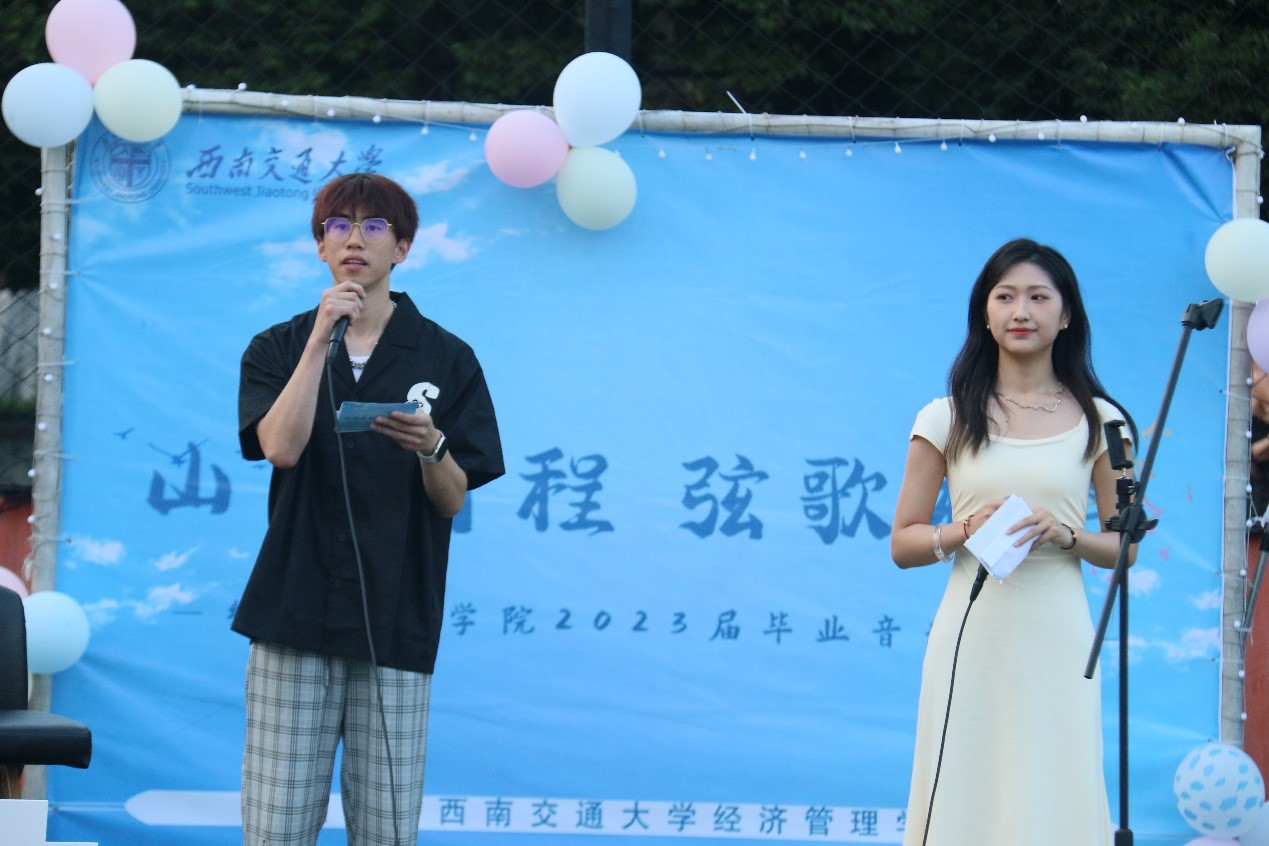 在毕业临近之际,为给2023届毕业生留下一个美好的校园回忆,2023年6月8日晚在九里校区足球场,公司成功举办以“山水万程,弦歌相伴”为主题的2023届毕业音乐晚会。本次晚会邀请了经济管理公司党委副书记杨宏毅老师,本科2021级辅导员张先凌、莫代玉老师,本科2020级辅导员陈建奇老师,本科2019级辅导员苏扬、安静泽老师,HAHA体育各年级同学参与本次晚会。本次毕业音乐晚会由公司学子和老师以独唱和合唱的方式共同演绎了23首歌曲。