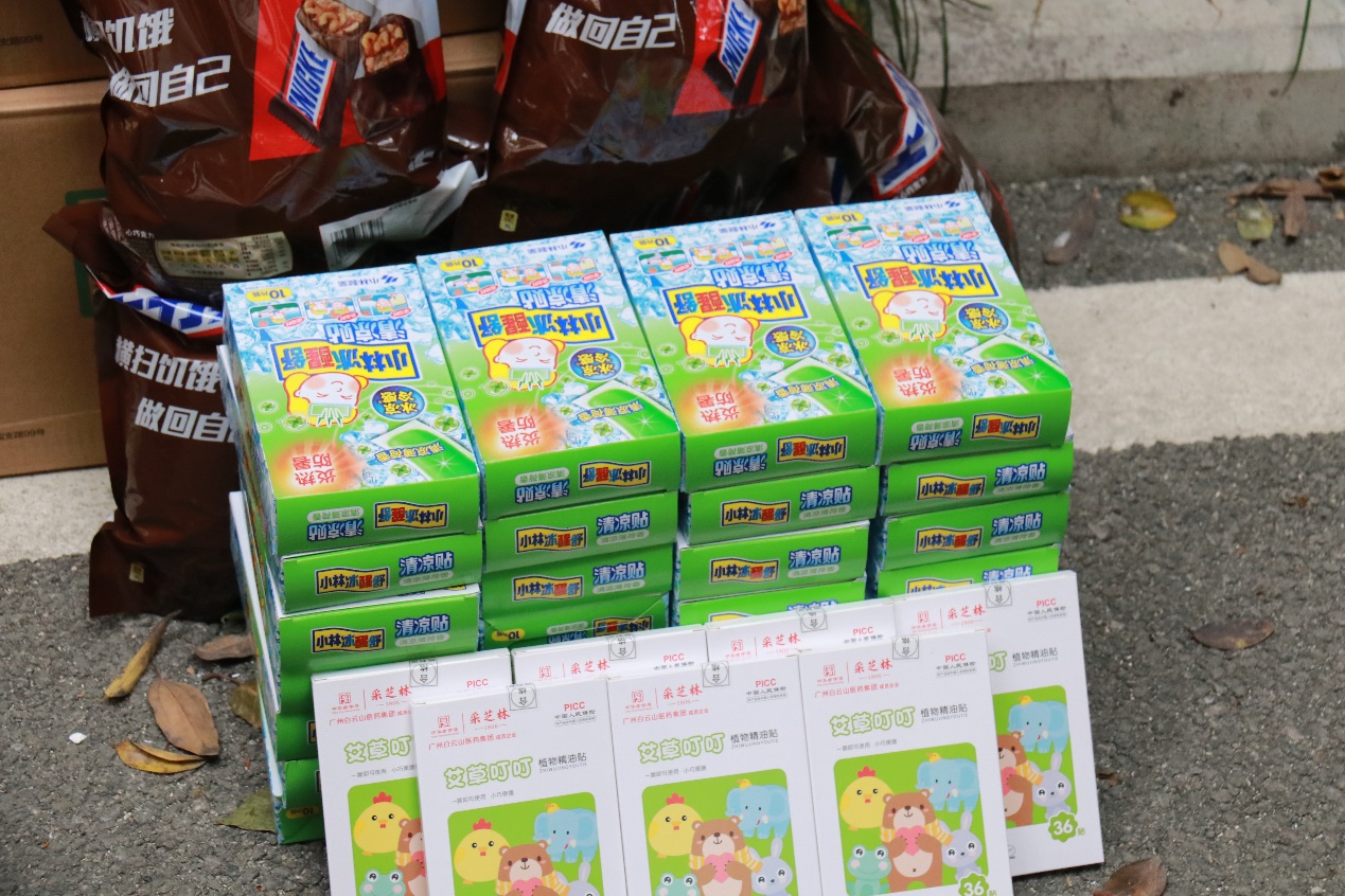 最后,王斌、郭强、杨宏毅给员工派发军训物资。学院高度重视大家在军训期间的身体心理状况、生活学习状态,为军训学子特别准备了降温贴、驱蚊贴、士力架等,还为大家准备了藿香正气水、花露水等保障物资。