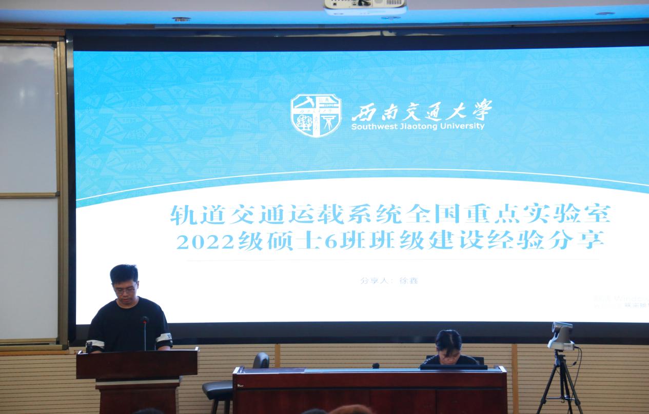 接下来,轨道交通运载系统全国重点实验室2022级硕士6班班长徐鑫进行了班级建设的经验分享,他强调了研究生班级建设和本科班级建设的不同之处,从五个不同方面概述了班级组织的活动,他指出研究生班级建设活动安排需充分考虑同学们的想法,使活动形式创新化、活动内容丰富化;提出对外宣传亦是班级建设工作中的重要板块,相关活动需要记录并报道,打造班级品牌,扩大班级影响力。