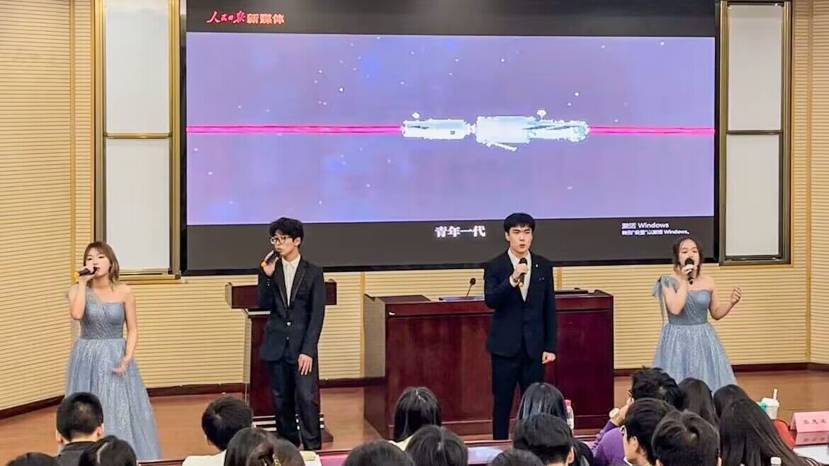 陶子扬从百年建党的历史与青年的关系讲起,分别从李大钊与毛泽东的视角,讲述了青年在建党征程中扮演的至关重要的角色。接着,陶子扬结合现实,以视频的形式展现了青年与当代各行各业的紧密联系,凸显了当代青年中流砥柱的作用。最后老员工艺术团的各位成员深情演唱歌曲《星辰大海》,致敬百年建党历史中挥洒热血的各位青年。