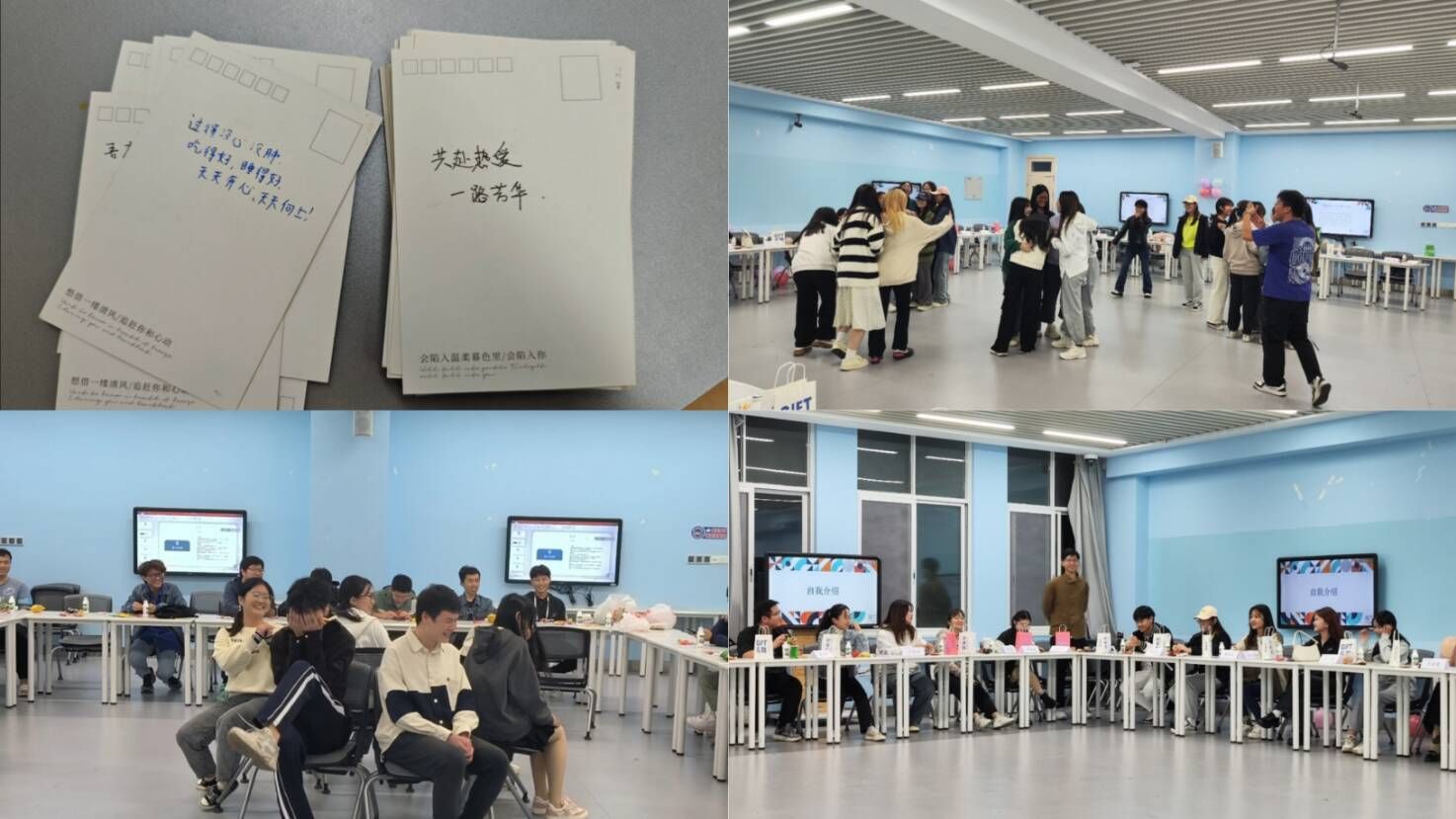 管信2022-02班别出心裁地组织了一次心愿调查问卷,同学们积极参与,许下了自己对未来的期许;会计2022-02班在破冰游戏之余,也在便利贴上写下对未来的展望,祝愿同学们在未来能取得满意的答复。金融2022-01班的“你画我猜”,金融2022-02班的“一元五角”,让同学们在互动配合、团结协作中感受到了彼此之间的热情,也更让大家认识到了团队协作的重要性,为班级未来的良好发展奠定了坚实的基础;经济2022-01班与经济2022-02班丰富多彩的游戏环节,在帮助同学们放松下来的同时,也找到了那份独有的班级归属感。