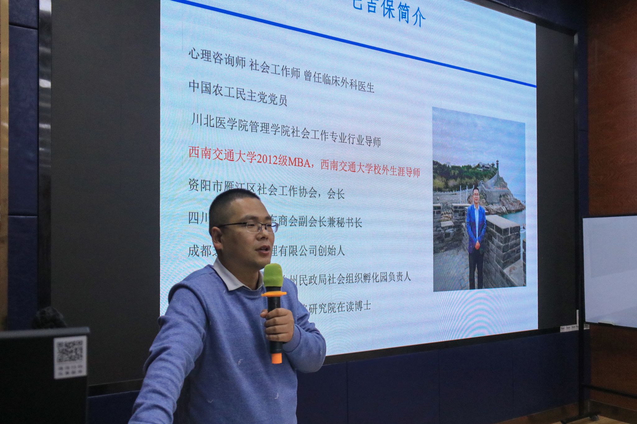 毛吉保是2012级MBA院友,任资阳市雁江区社会工作协会会长、成都芝鹤健康管理有限公司创始人、凉山彝族自治州民政局社会组织孵化园负责人,在职业生涯规划方面有着丰富的指导经验。
