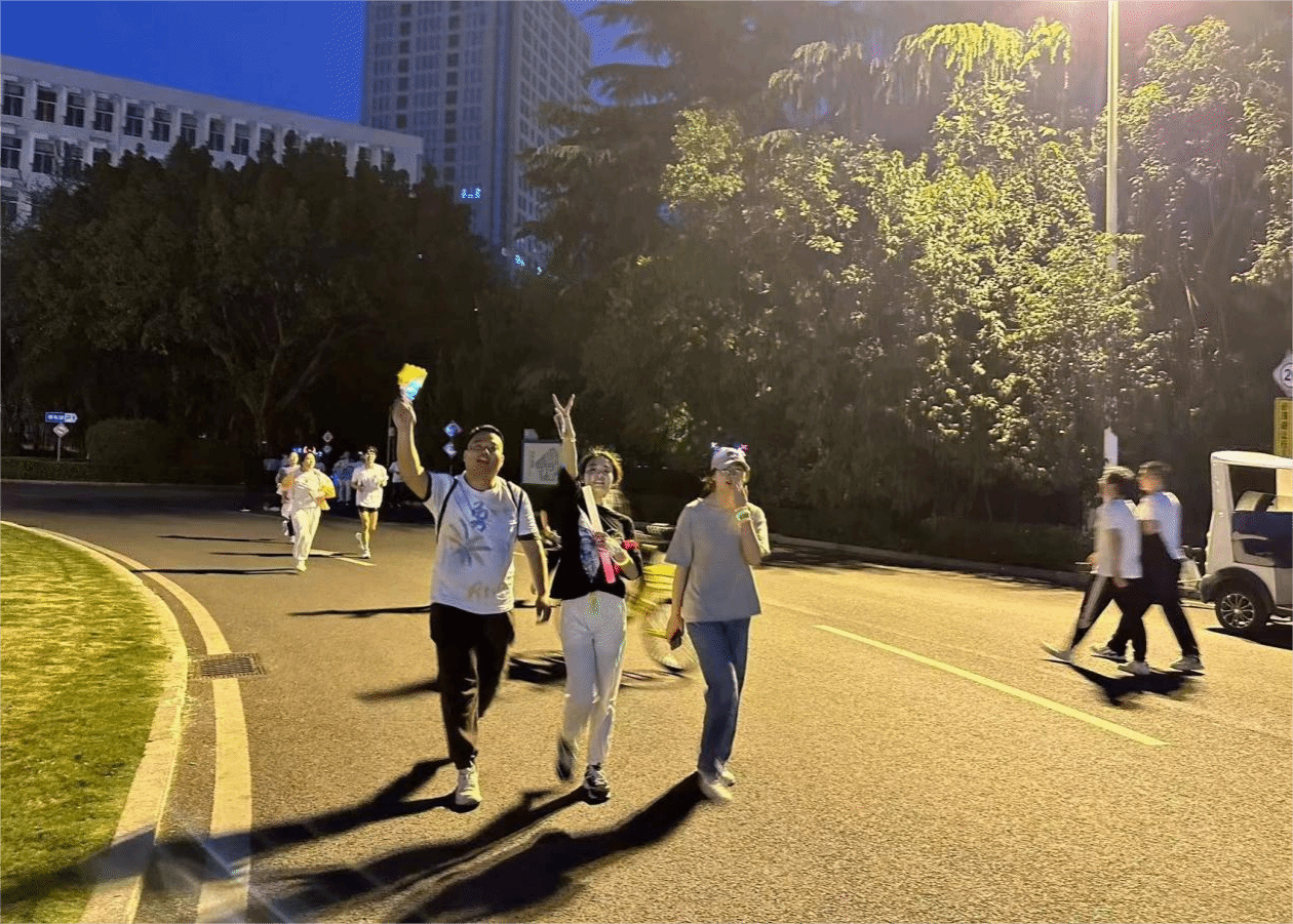 身着独具特色的夜跑服饰,头戴发光发箍,手围荧光手环,在夜色中流光溢彩,在黑暗中闪耀着勃勃生机,参与者们欢快地奔跑,激情澎湃,尽情释放着内心的活力与欢乐。大家携手同心,在夜空下谱写着属于自己的精彩篇章,展现了勇于挑战、团结协作的运动精神。